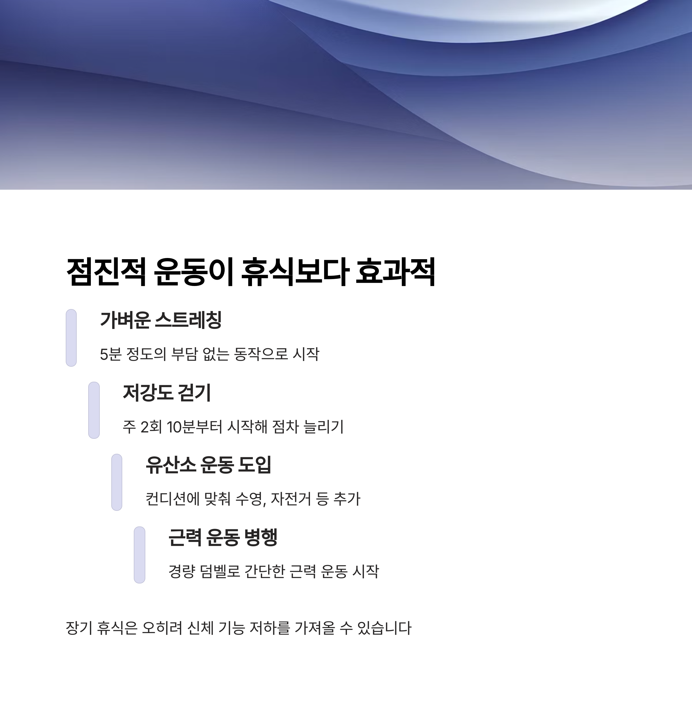 장기 휴식은 오히려 신체 기능 저하를 초래할 수 있습니다. 점진적