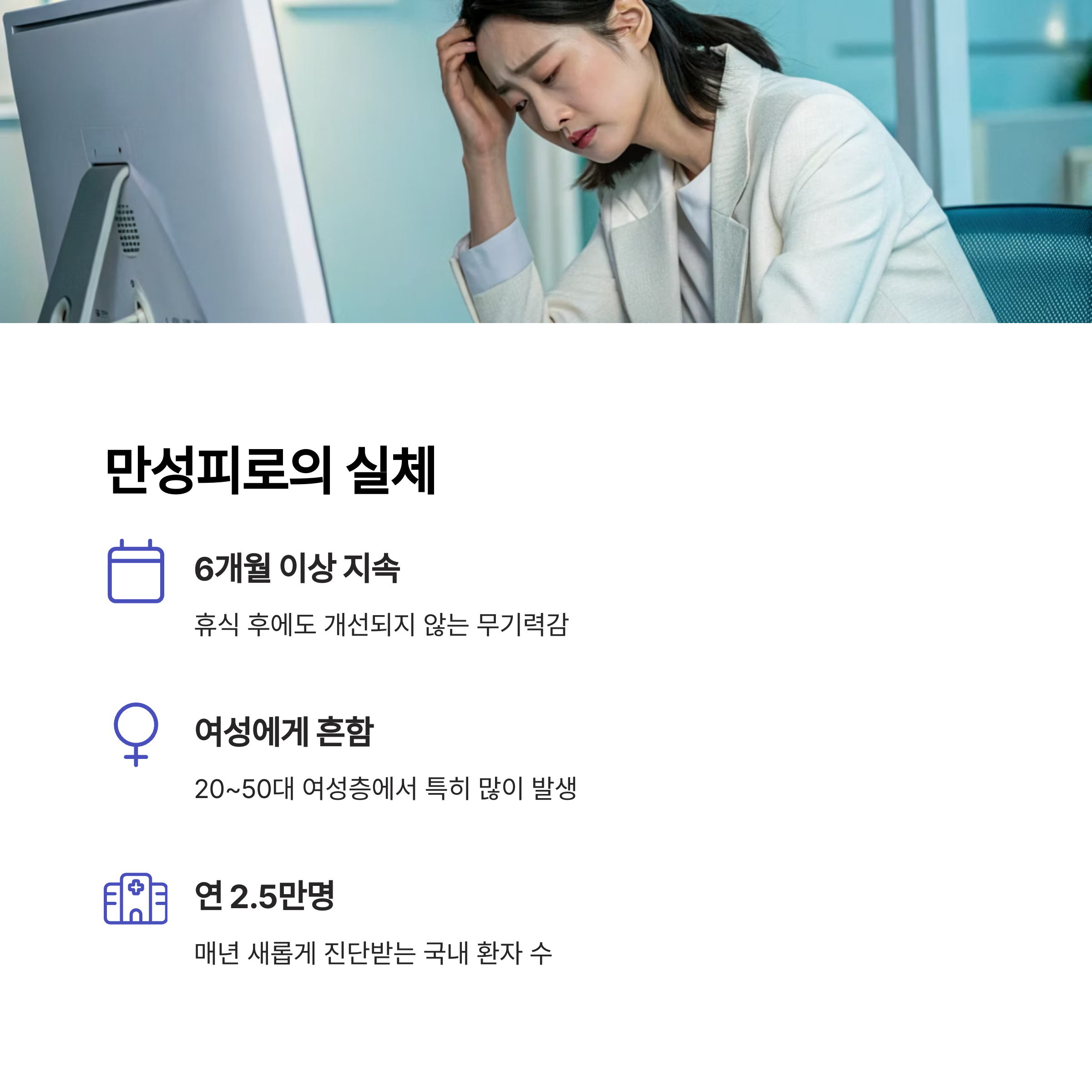 일반적인 피로와 달리 만성피로는 충분한 휴식 이후에도 개선되지 않으며