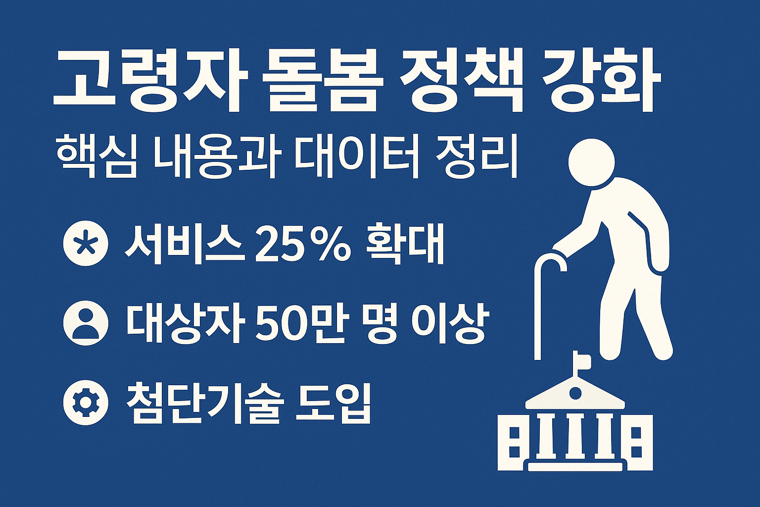 2025년 대한민국은 초고령사회(65세 이상 인구 비율 20% 이상)로 진입하며, 이에 대응해 정부와 지방자치단체는 고령자 돌봄 정책을 대폭 강화하고 있습니다. 최근 발표된 정책과 현황을 중심으로, 주요 내용과 수치, 변화 방향을 종합적으로 정리합니다.
