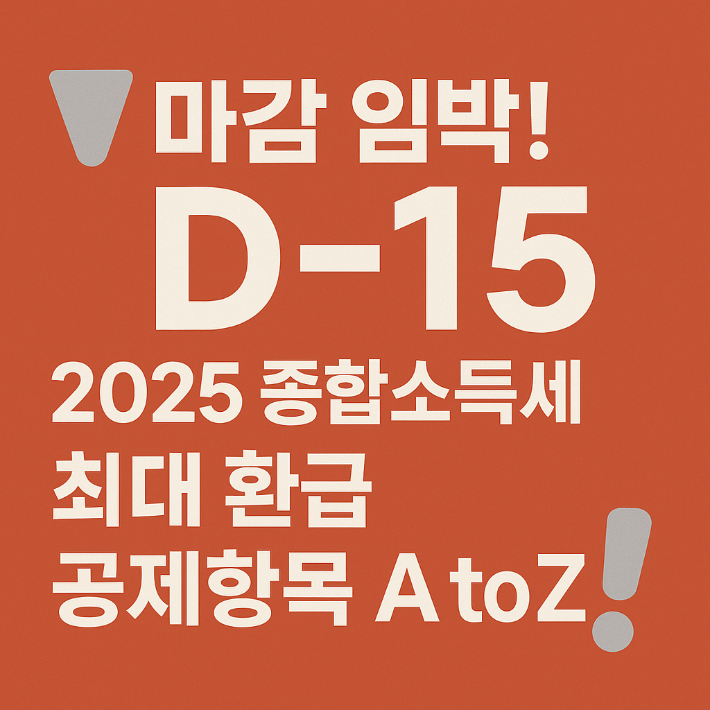 하지만 조금만 신경 쓰면 생각보다 많은 세금을 줄일 수 있다는 사실! 마감까지 남은 약 15일 동안이라도 핵심만 딱 챙겨서 후회 없는 종합소득세 신고를 할 수 있도록, 제가 꼭 확인해야 할 공제 항목과 절세 전략들을 알기 쉽게 정리해봤습니다. 같이 한번 살펴볼까요? 😊