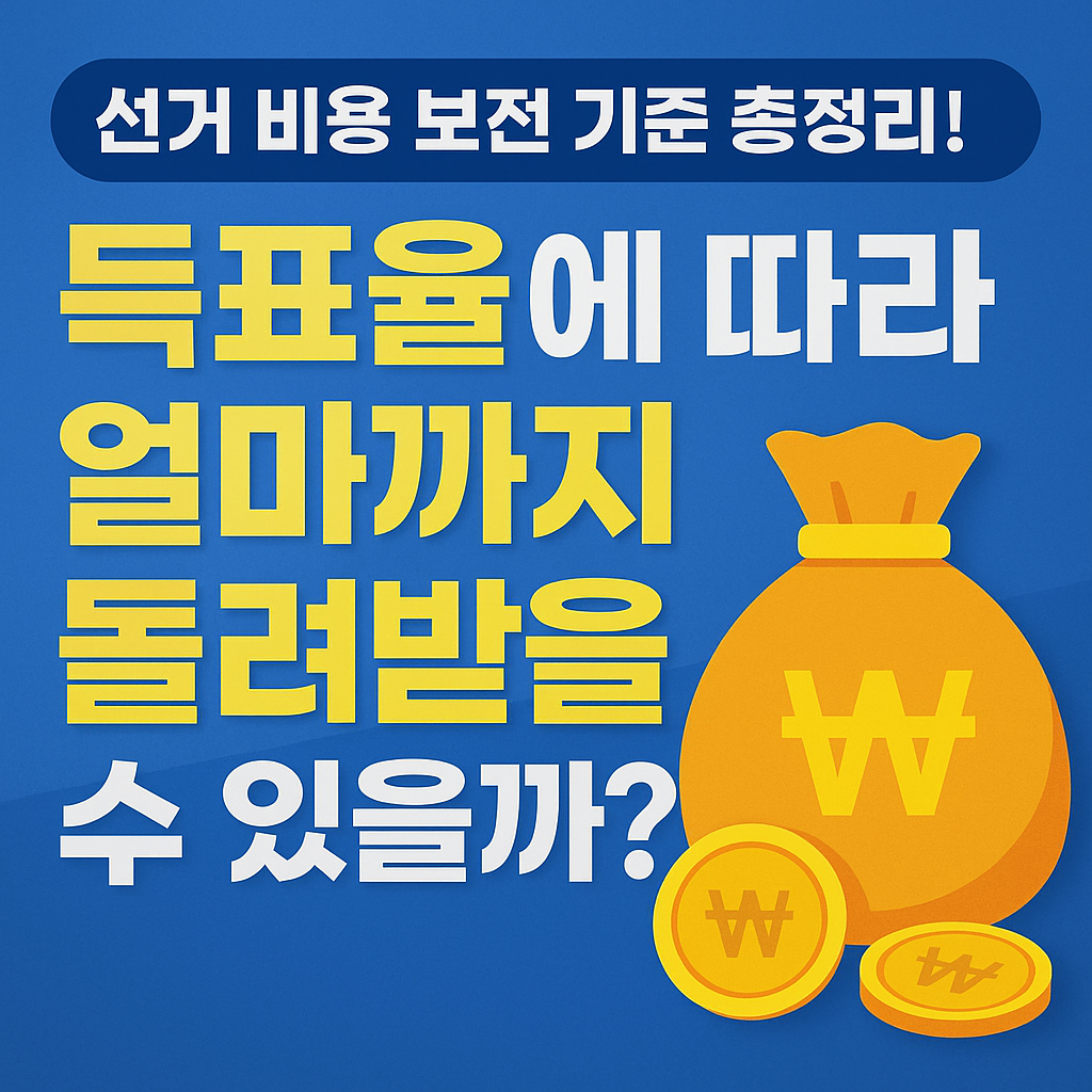 - 득표율 기준: 선거 종류에 따라 다르며, 보통 10~15% 이상 득표 시 50% 보전, 15~20% 이상 득표 시 전액 보전.