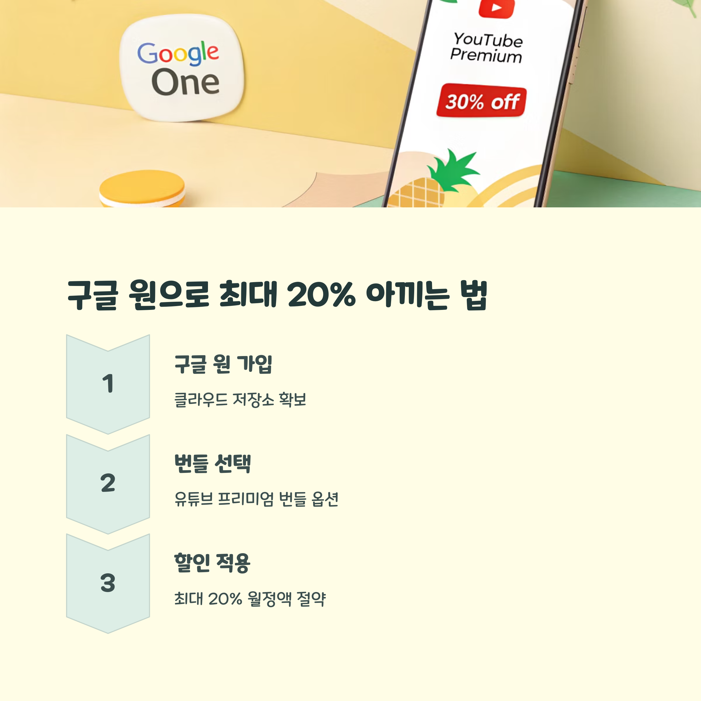 구글 원을 이미 사용 중이라면 유튜브 프리미엄을 추가로 연결해보는 것도 좋은 절약 전략입니다.