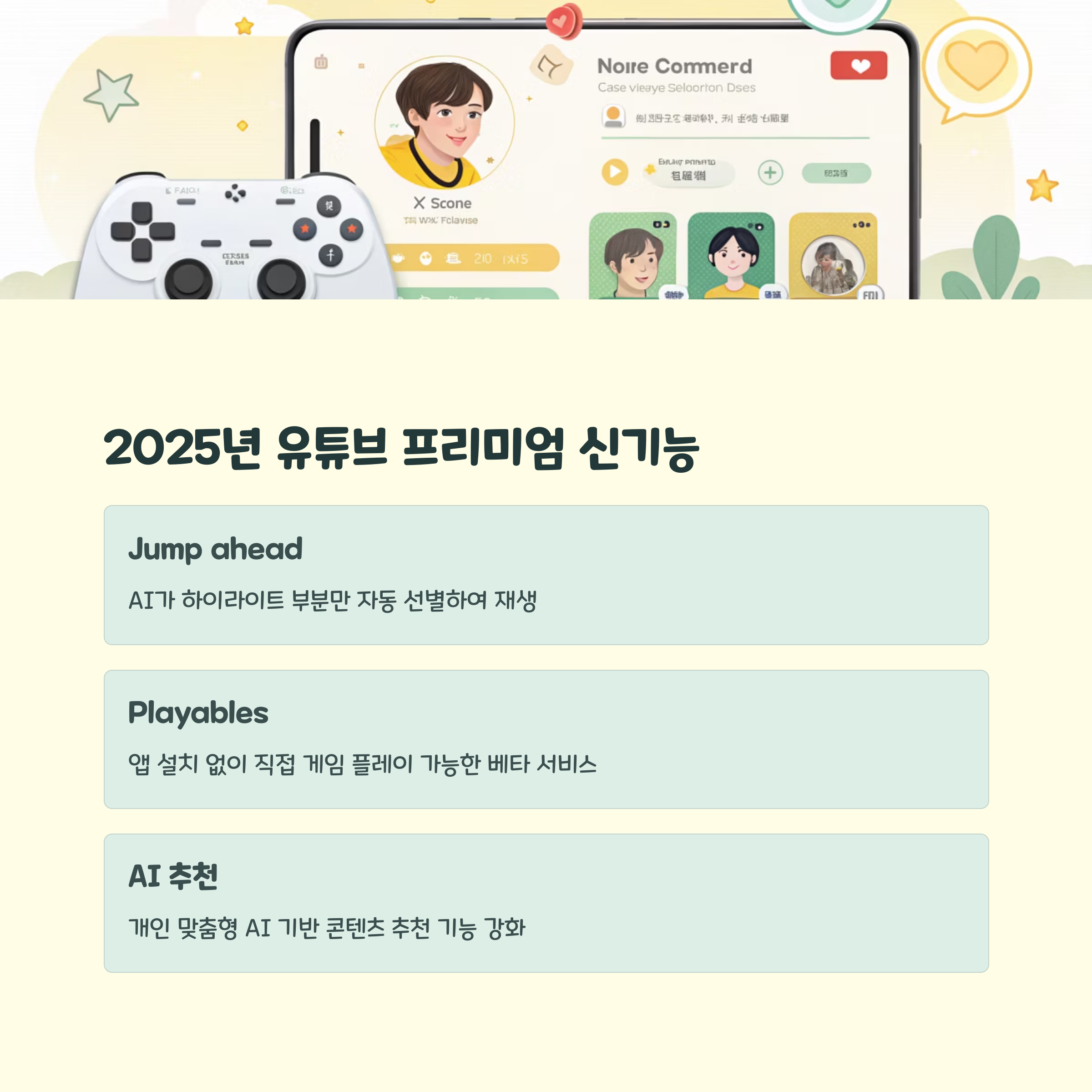2025년 프리미엄에서는 Jump ahead(하이라이트로 건너뛰기), Shorts 자동 다운로드, 4배속 재생 등 새로운 기능이 속속 추가되고 있습니다.