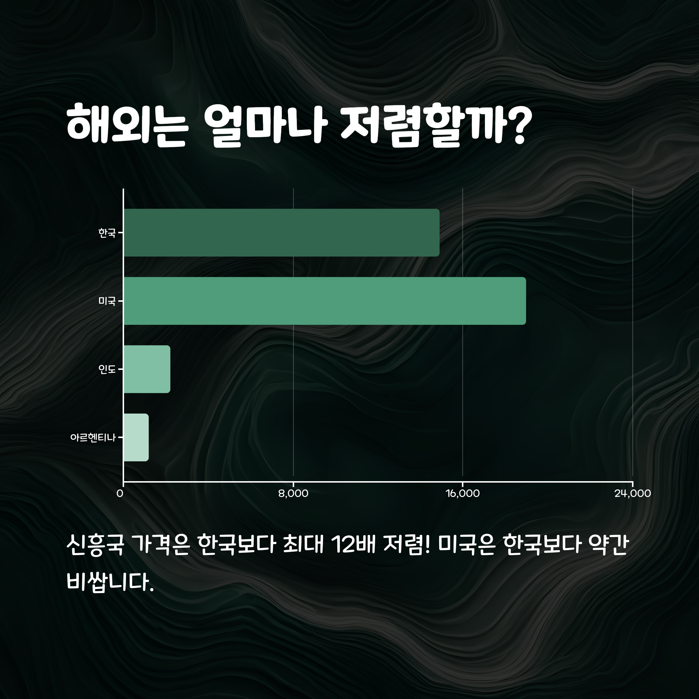 하지만 인도는 월 $1.77(약 2,400원), 아르헨티나, 터키 등은 $1~2대로 압도적으로 저렴합니다.