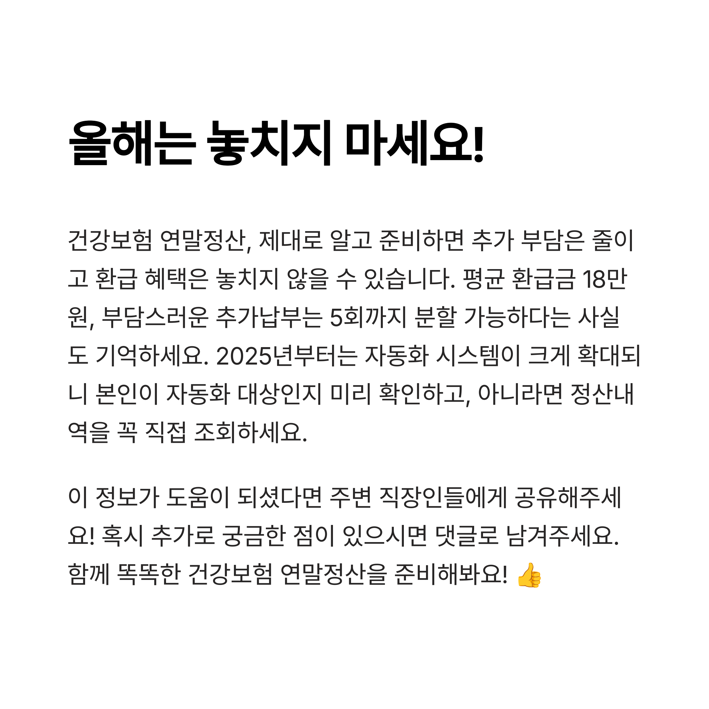 "이 시기를 놓치면, 추후 보험료에 반영돼 더 크게 부담될 수 있습니다." 📆