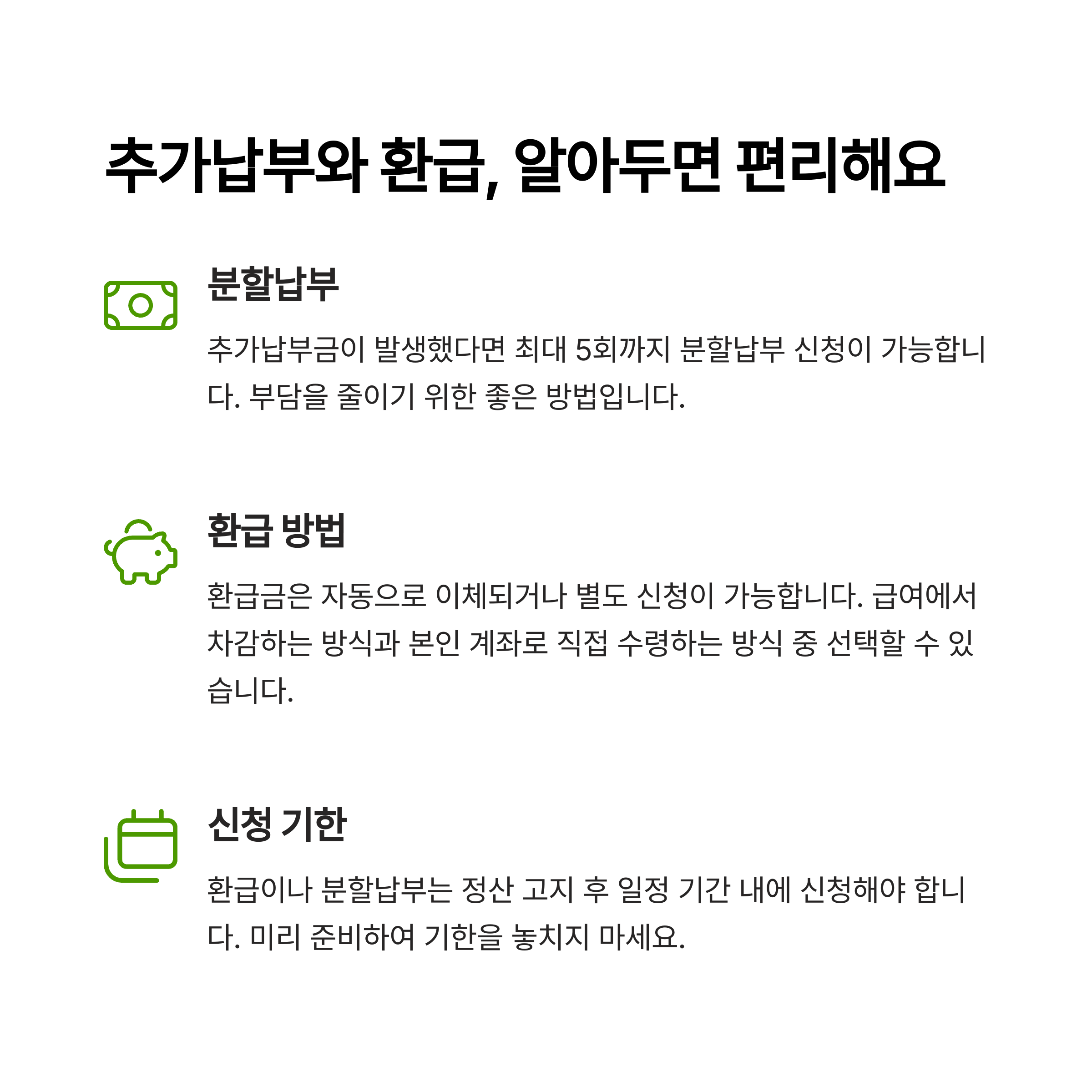 "모르는 사이 자동 납부되거나 환급 놓치는 일이 없도록 미리 챙기세요." 💳