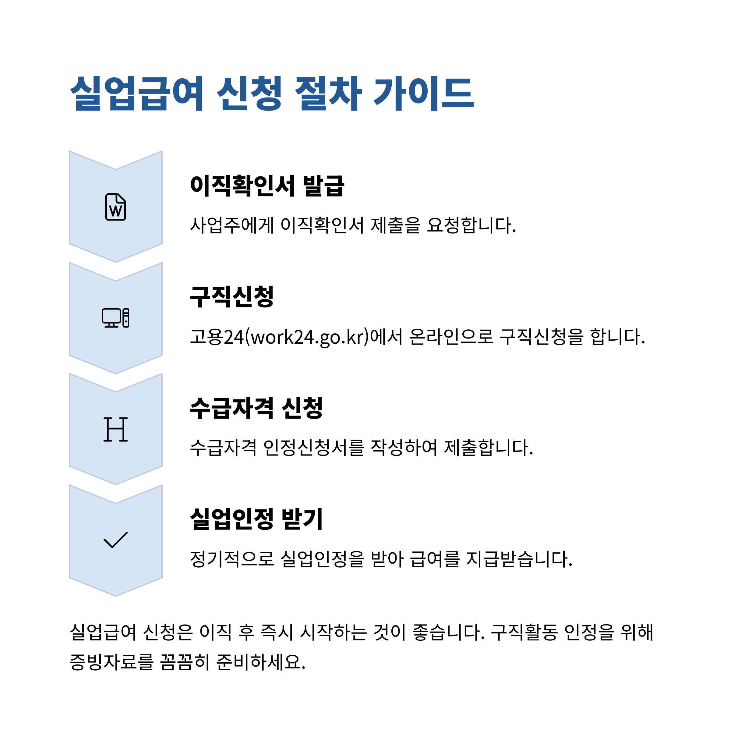"이 다섯 가지만 제대로 챙기면, 실업급여 수급이 어렵지 않습니다!" 📋