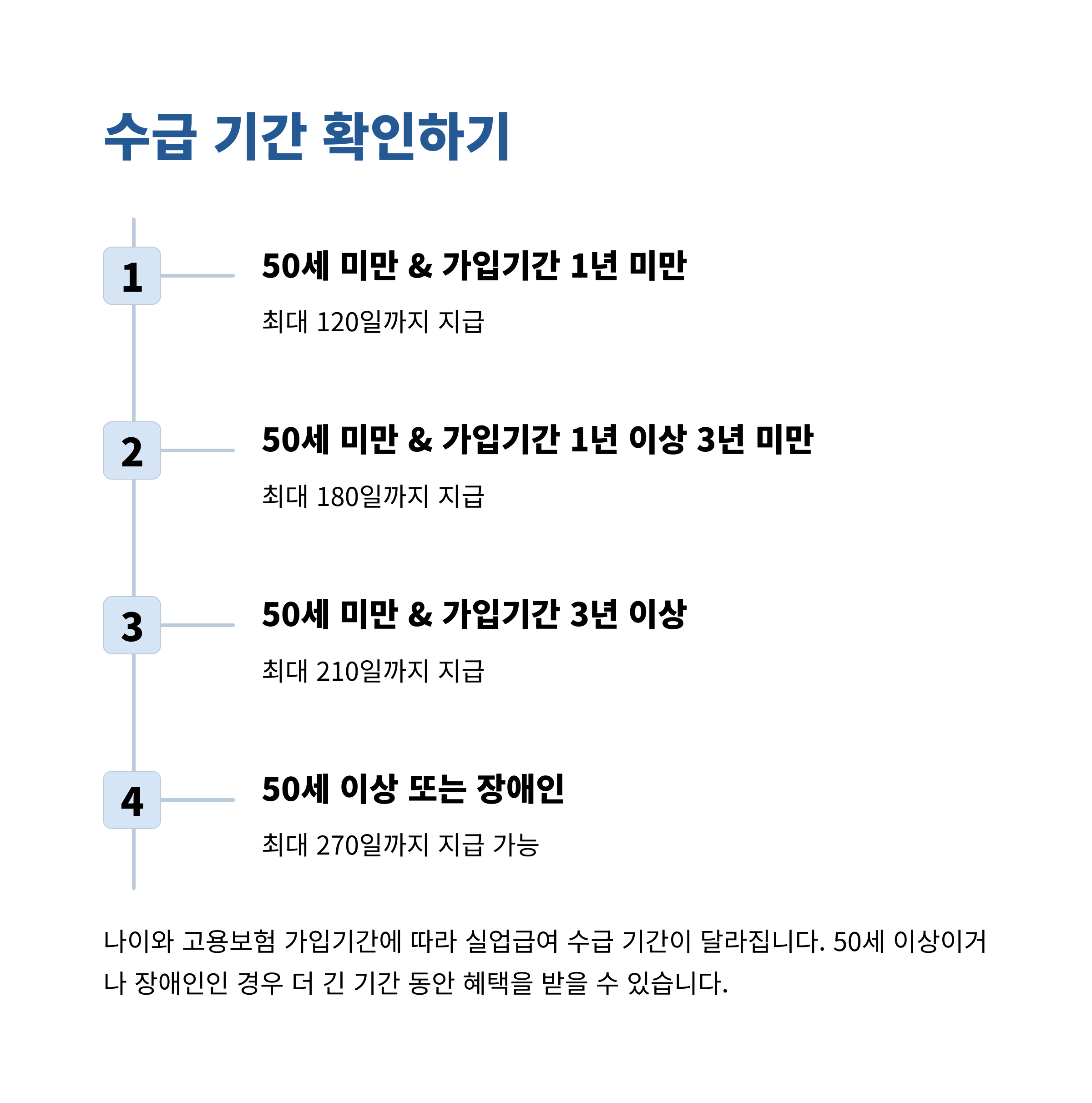 | 50세 이상 또는 장애인 | 120일 | 180일 | 210일 | 240일 | 270일 |