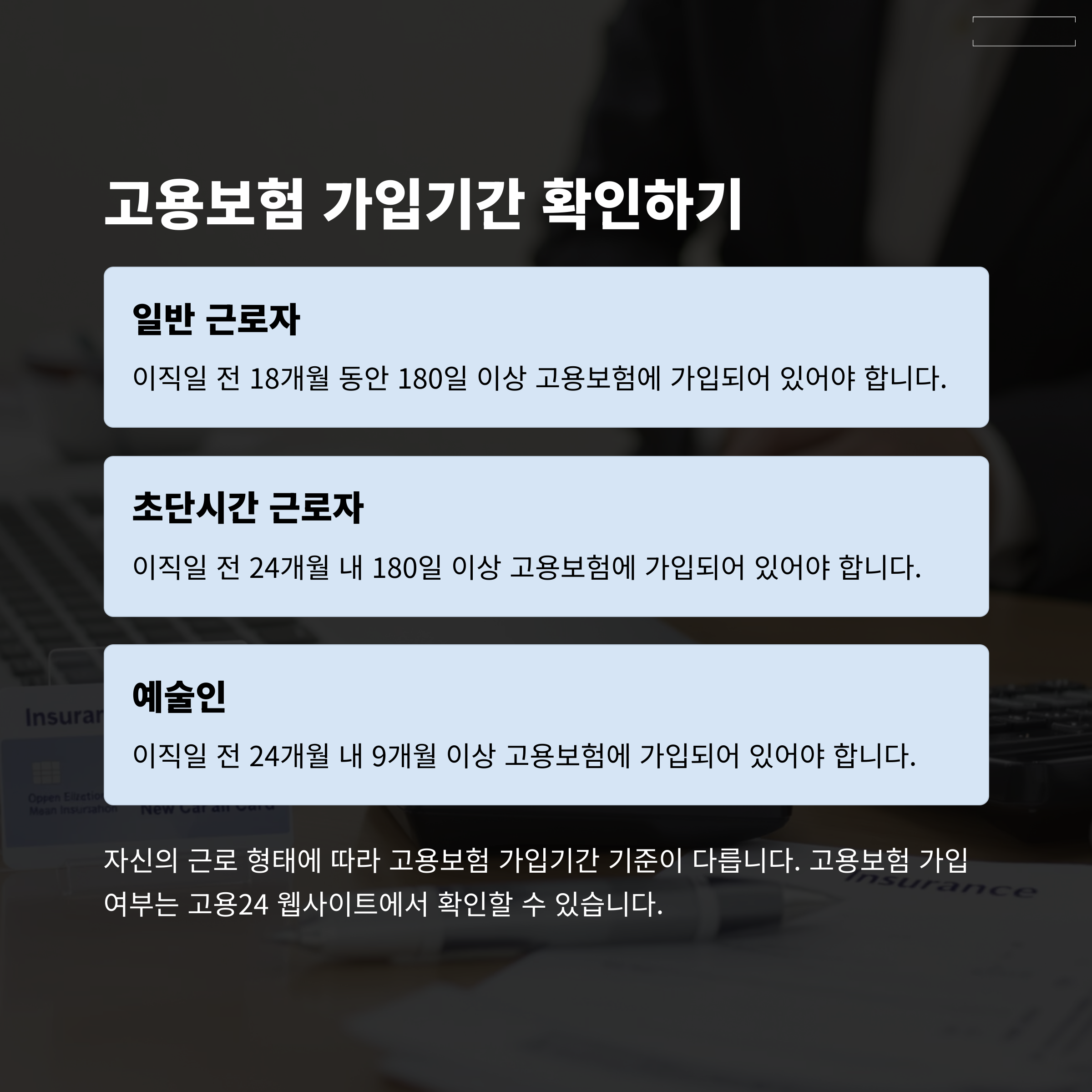 "고용보험 이력이 부족하면 아무리 조건이 맞아도 수급이 불가합니다." 📅