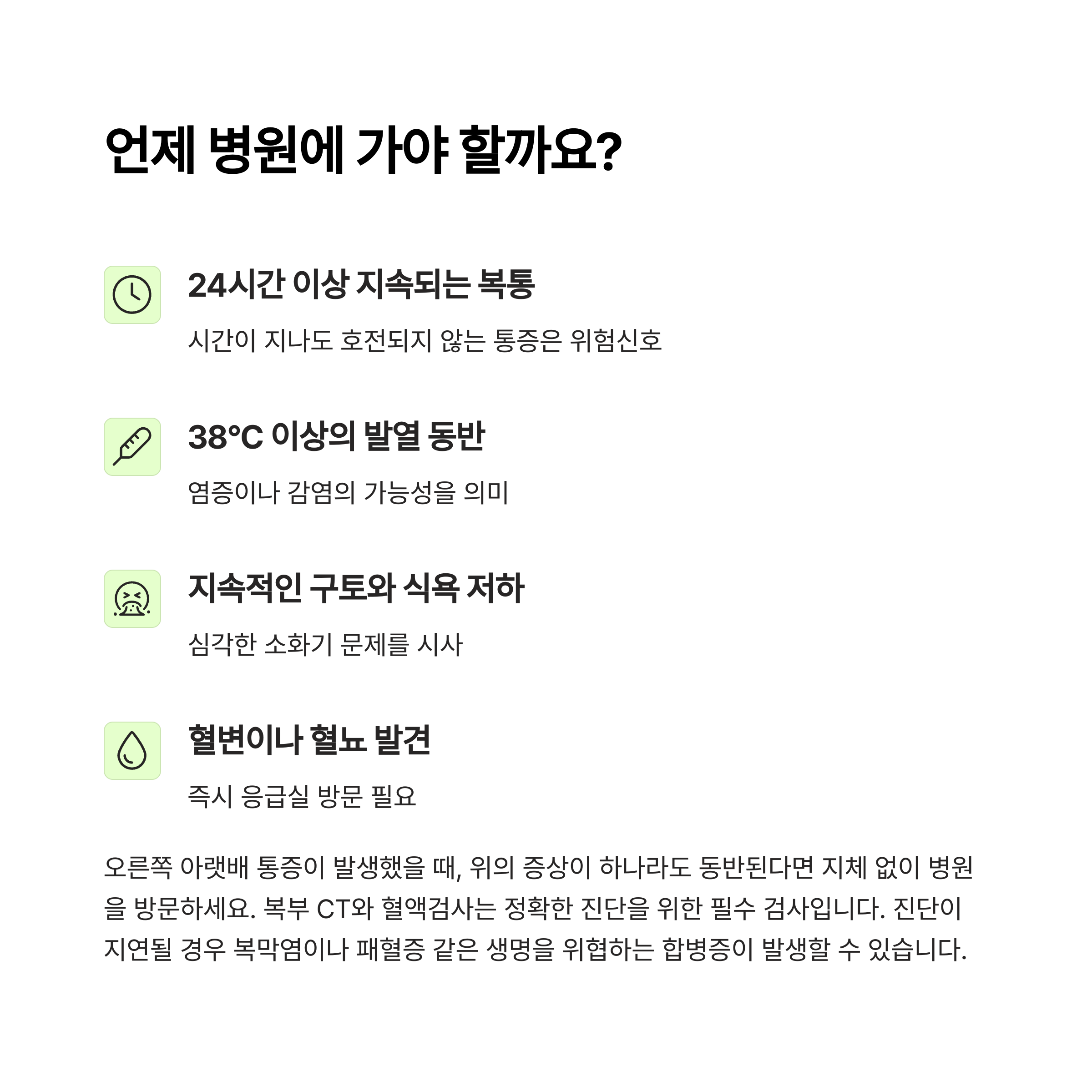 🚨 특히 통증이 너무 심하거나 구토가 동반된다면 즉시 병원 방문하세요!