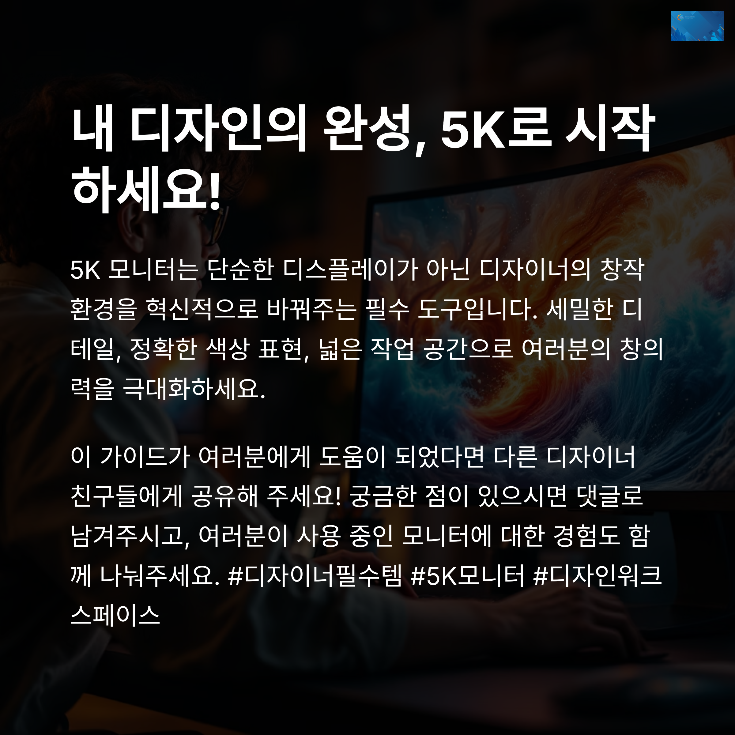 "2025년, 디자이너의 눈과 손을 만족시킬 최고의 투자처는 바로 5K 모니터입니다." 👩💻✨