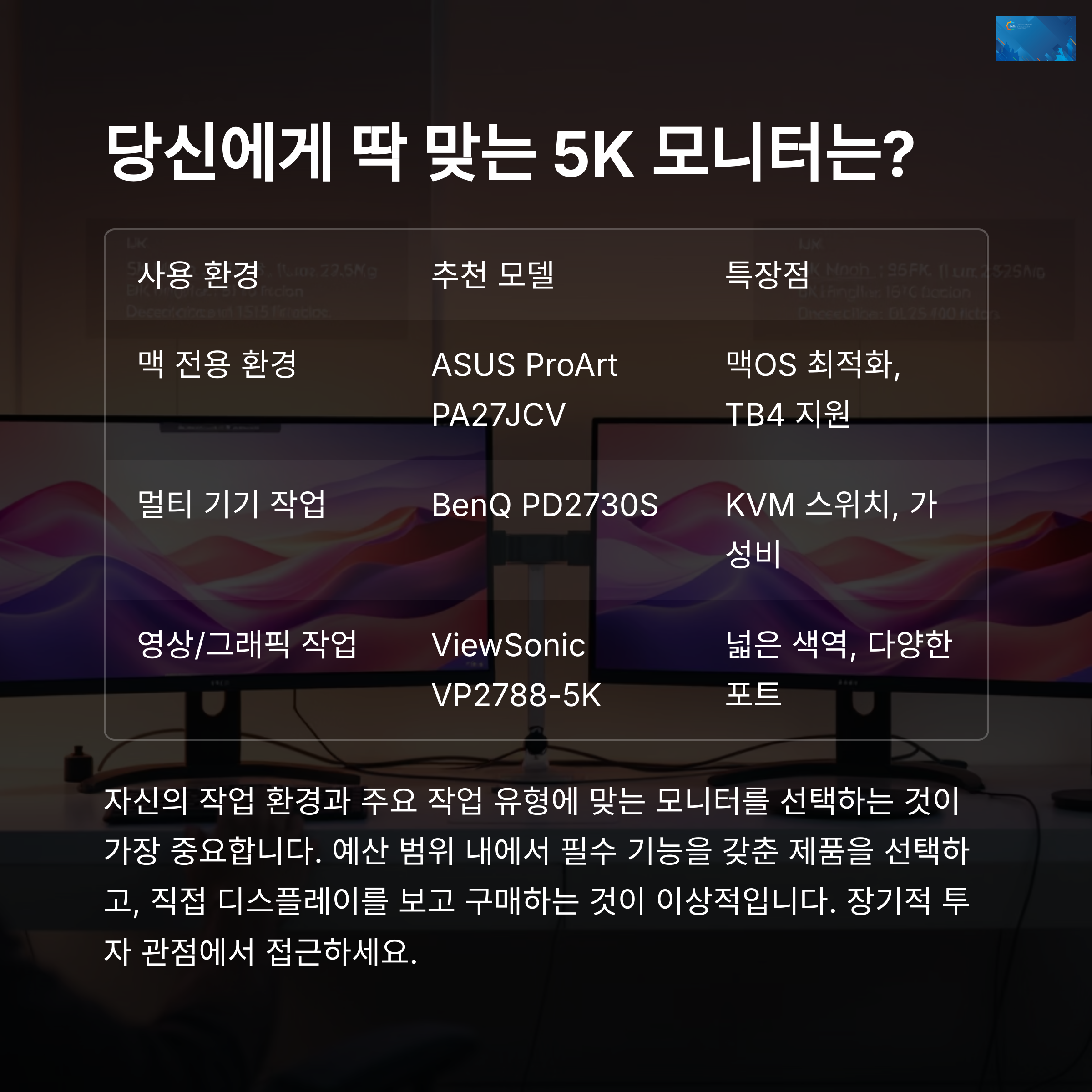 "이 8가지만 체크해도 전문가용 5K 모니터 선택은 실패하지 않습니다." ✍️