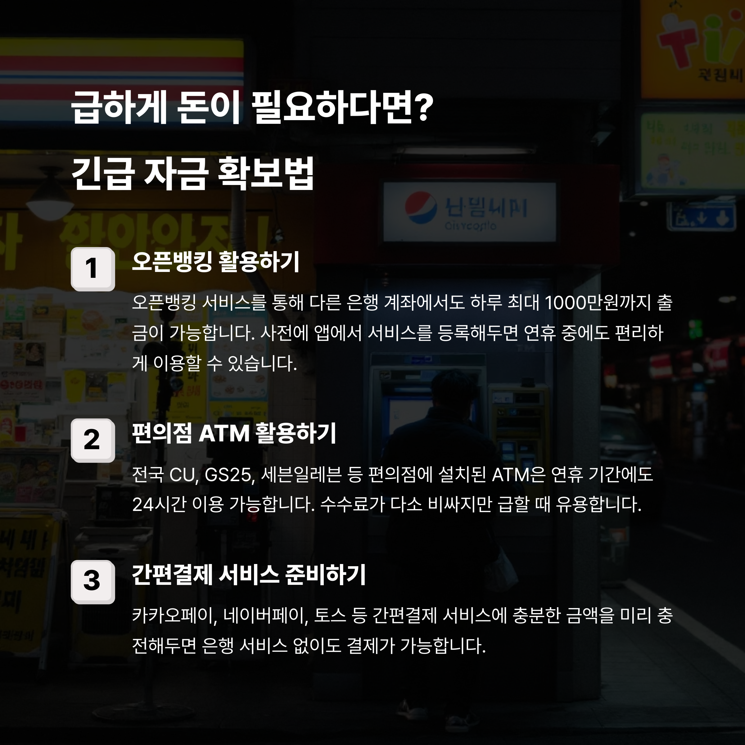 "ATM 위치, 잔액 여부, 오픈뱅킹 연결 여부 등을 꼭 사전에 점검하세요" 🏧