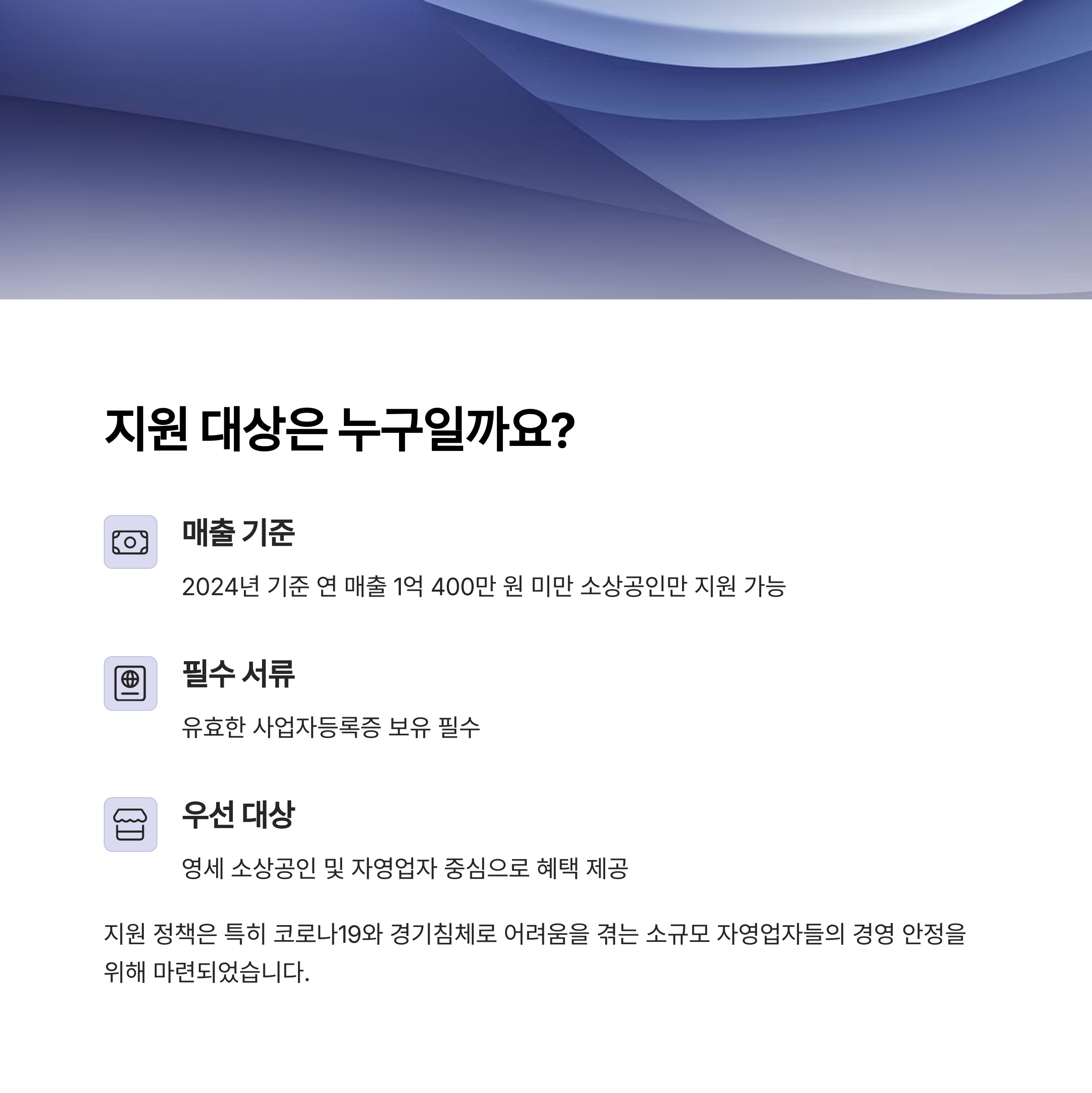지원 대상 요건 - 연 매출 1억 400만 원 미만 필수 조건