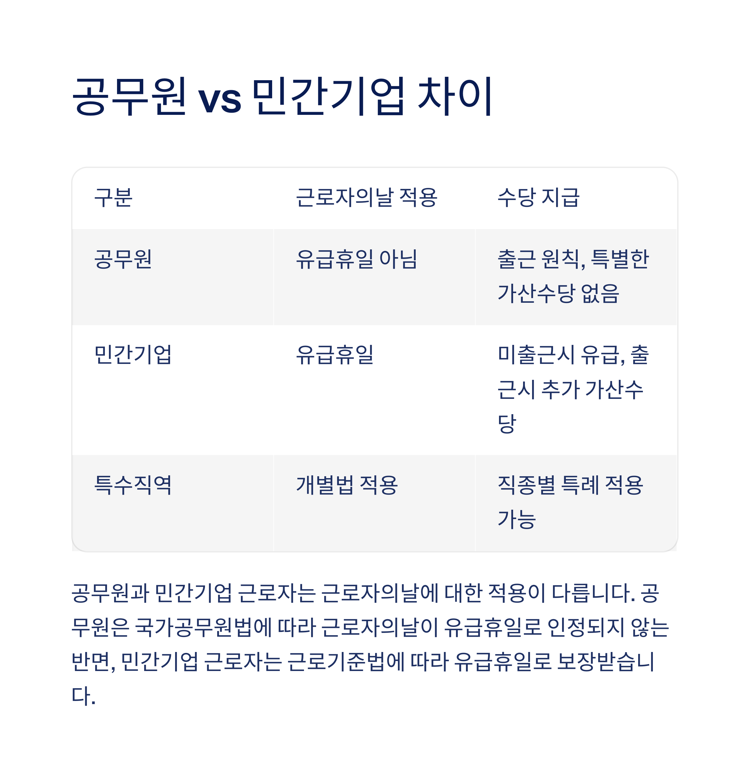 공무원과 민간기업 차이 - 근로자의날 적용 여부