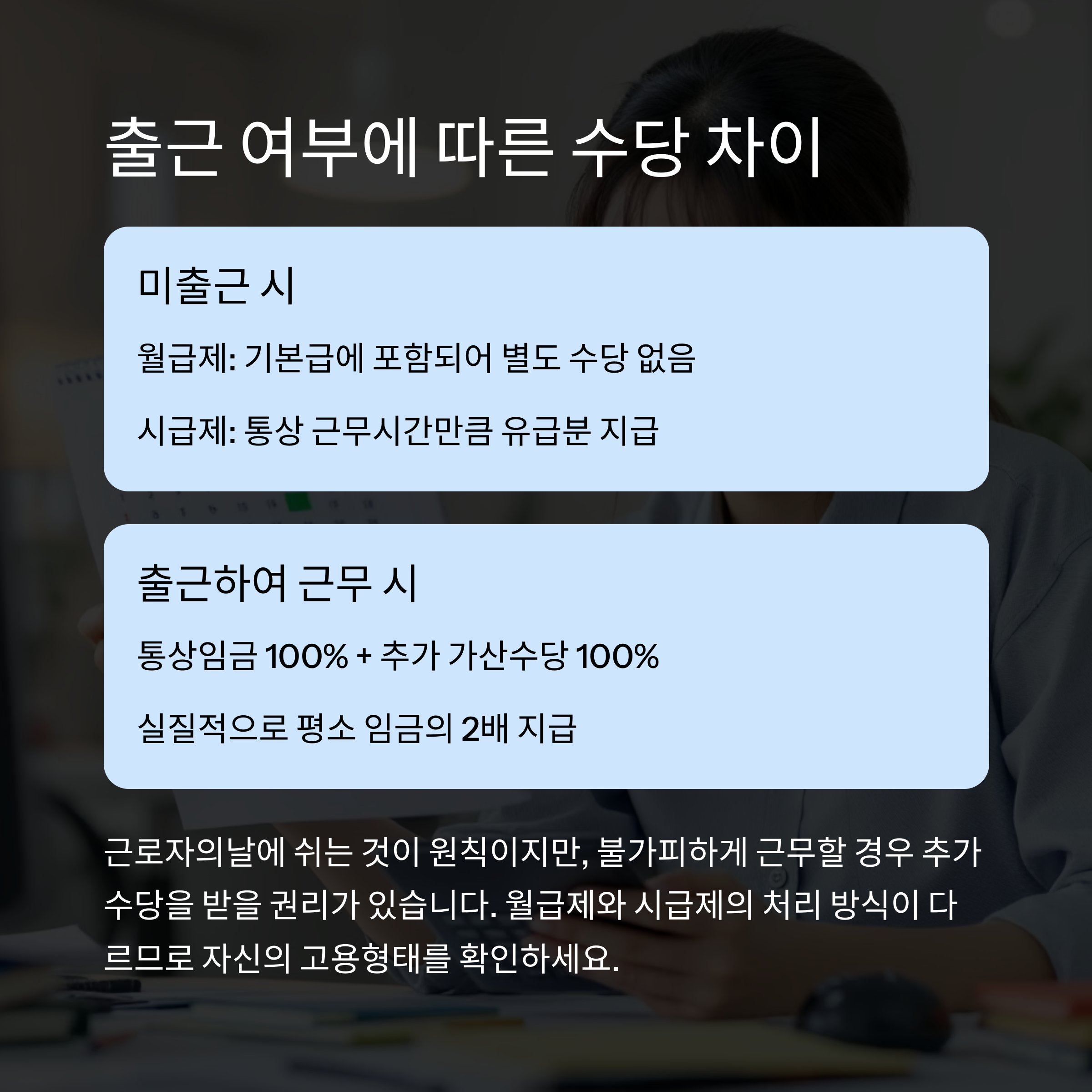 시급제 근로자라면 시급의 2배, 월급제라면 추가 수당 없이 기본 월급만 받게 됩니다