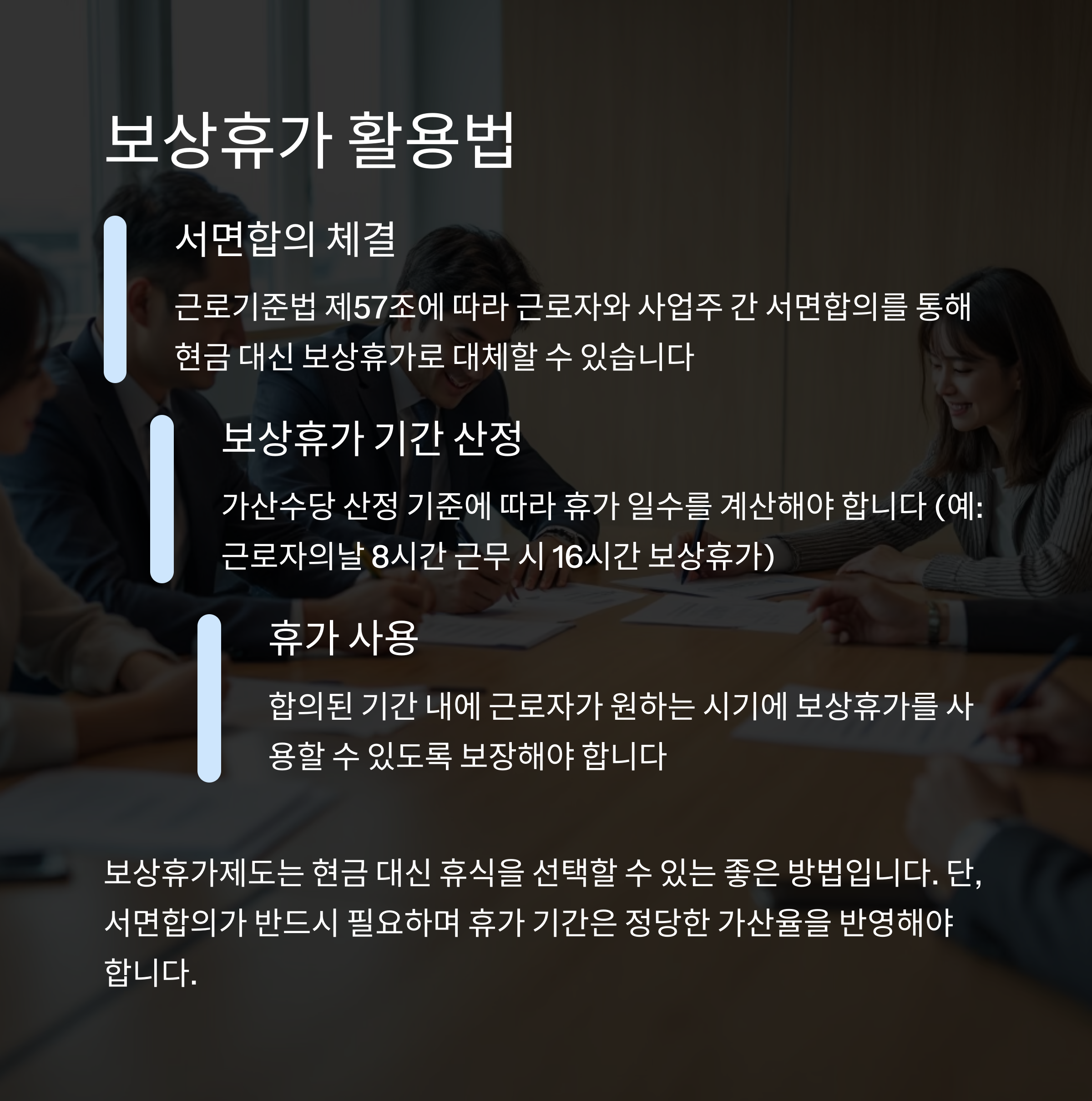 합의 없이 일방적으로 보상휴가를 부여할 수는 없으니 주의하세요 📄