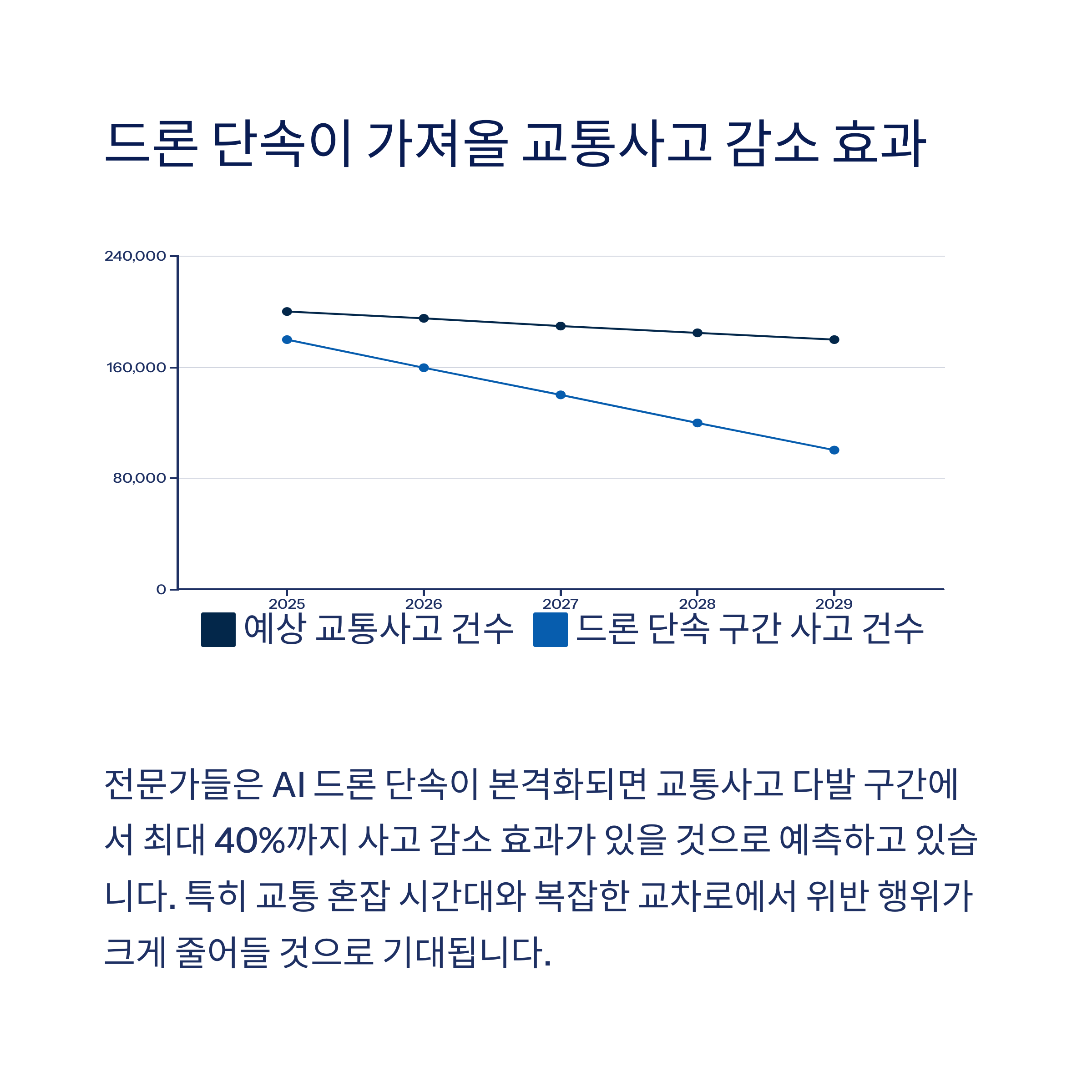 AI 드론 도입으로 교통법규 준수율이 상승하고, 이에 따른 교통사고 감소가 기대됩니다.