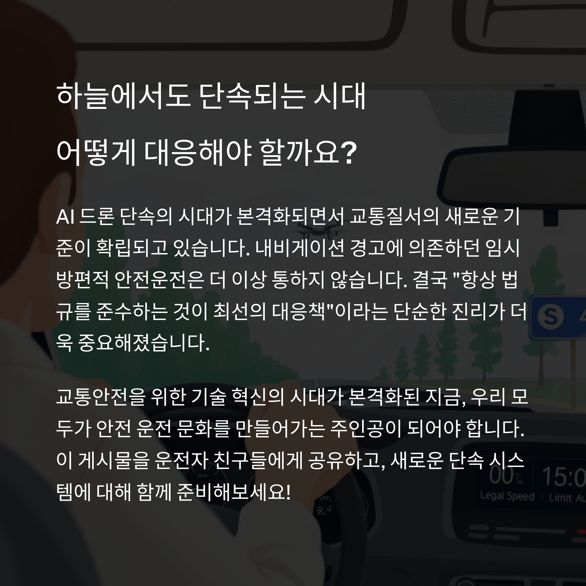 그러나 AI 드론 단속은 예고 없이 이루어지므로, 운전자가 예측할 수 없습니다.