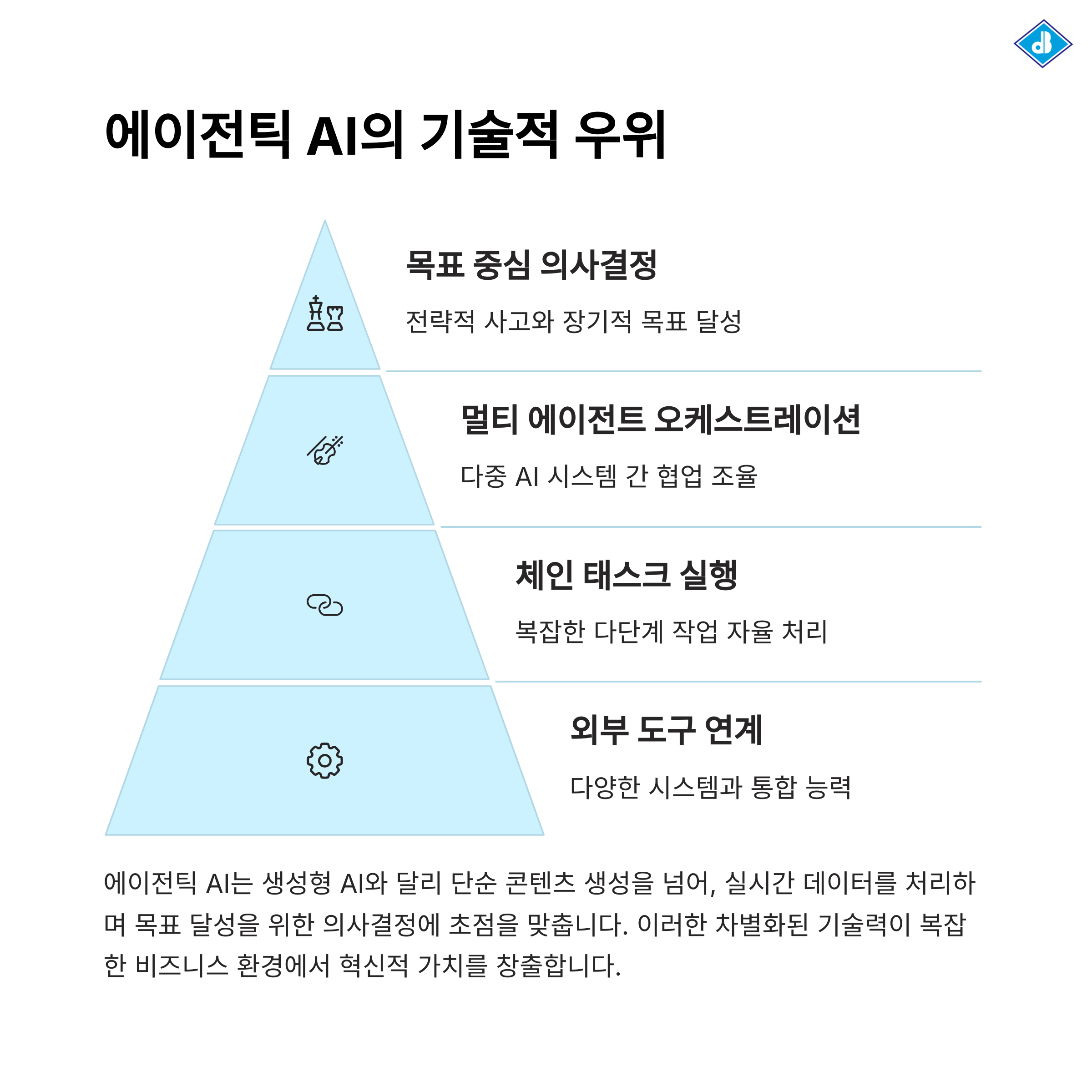 특히, 멀티에이전트 협업, LLM 기반 자연어 이해, 지속적 학습과 실행력은 에이전틱 AI만의 차별화된 강점입니다.