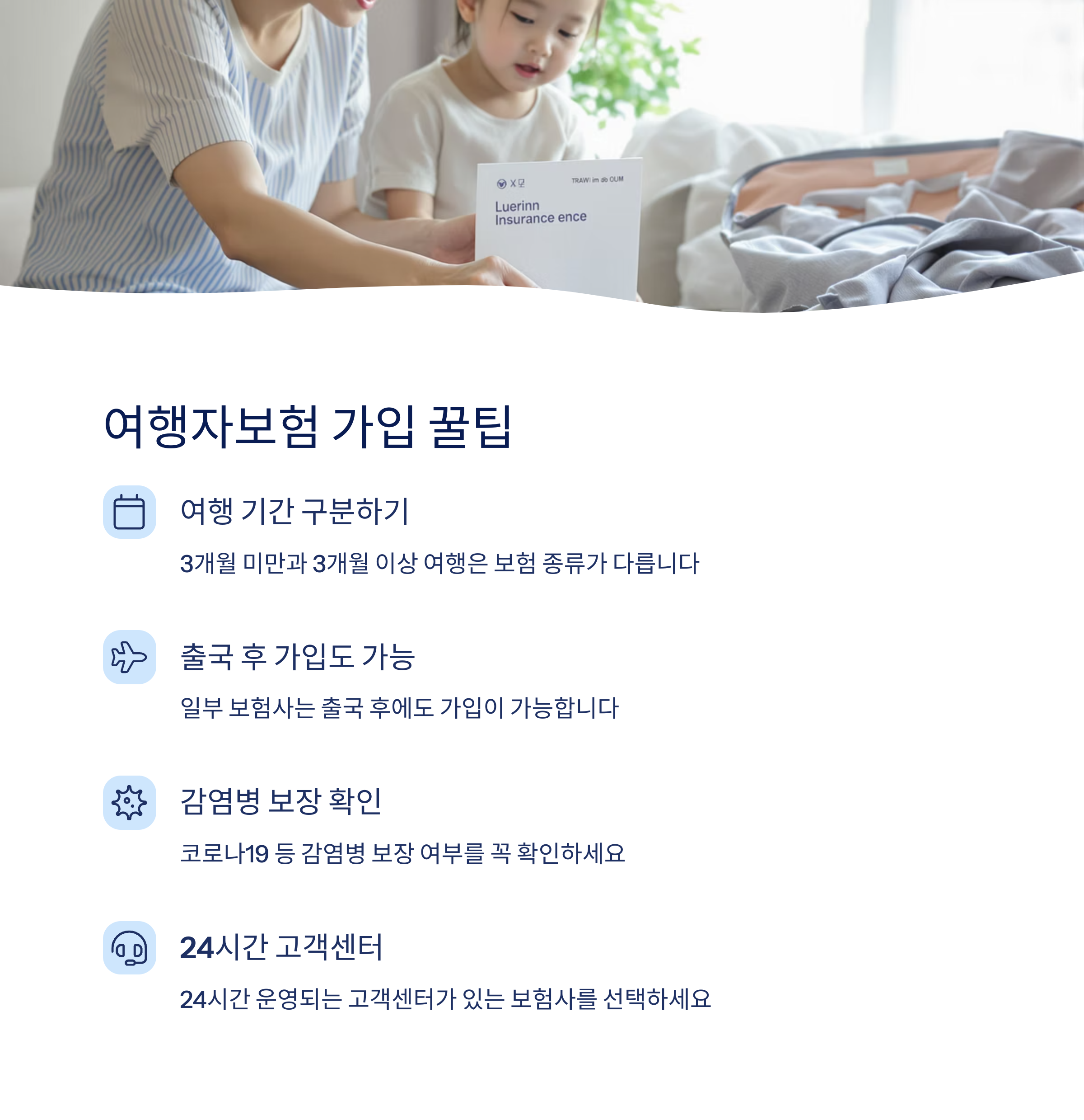- 짧은 여행(3개월 미만)과 긴 여행(3개월 이상) 보험 구분 필수