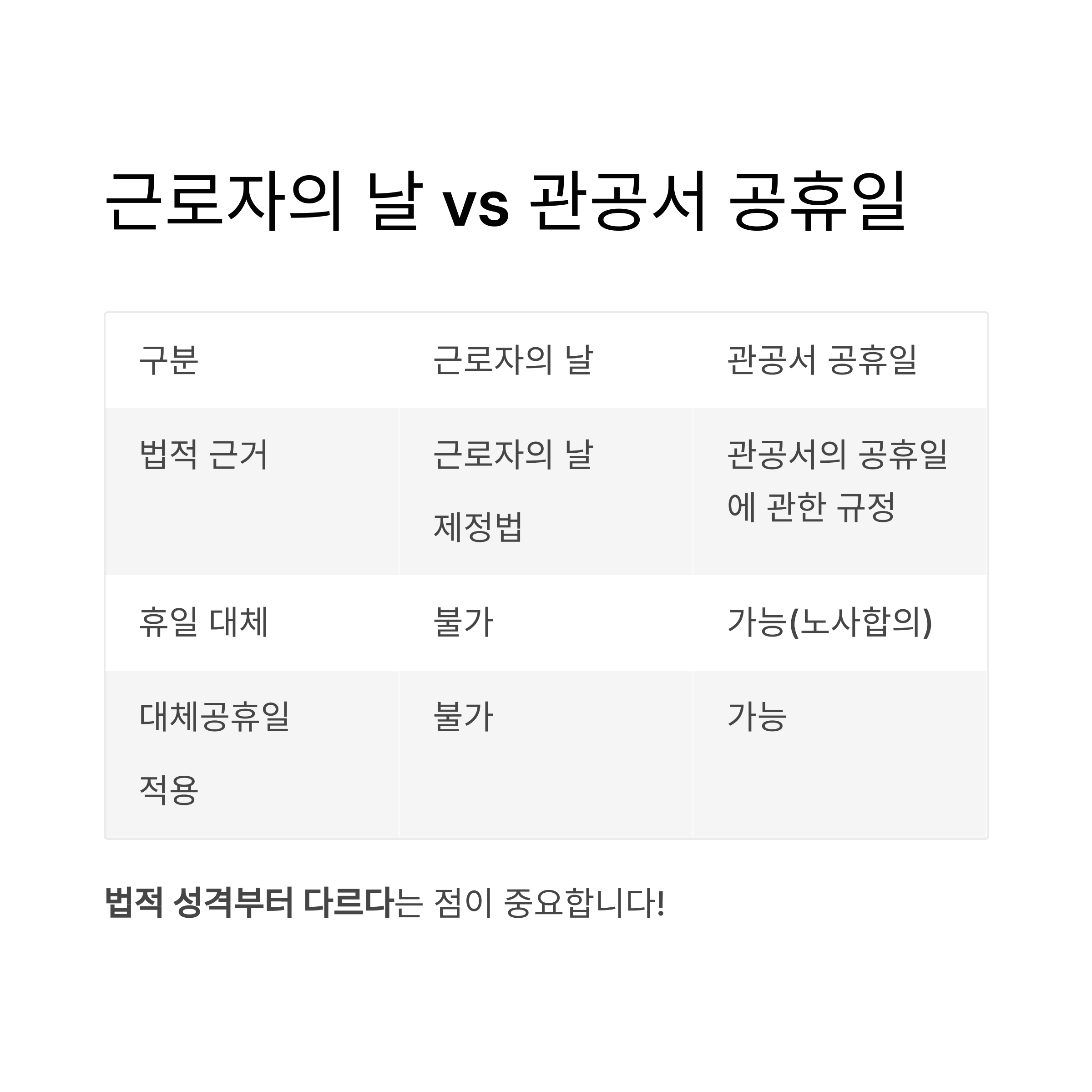 근로자의 날 vs 관공서 공휴일 (차이점 비교)