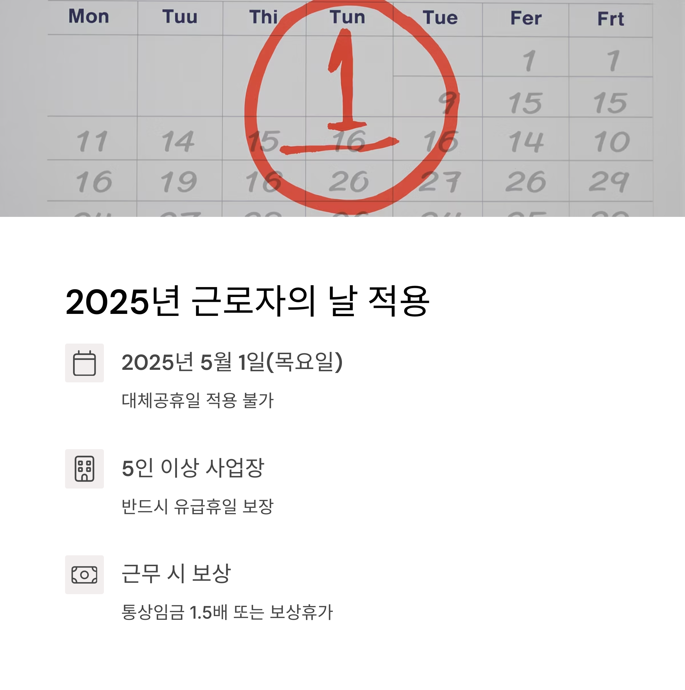 "2025년에도 근로자의 날 대체는 절대 불가합니다."