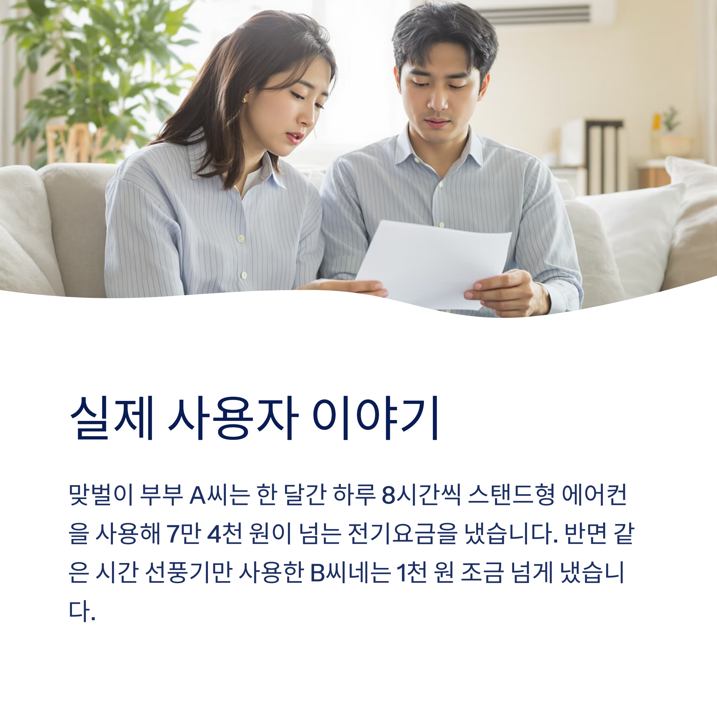 "맞벌이 부부 A씨는 여름 한 달 동안 하루 8시간씩 스탠드형 에어컨을 사용했습니다.