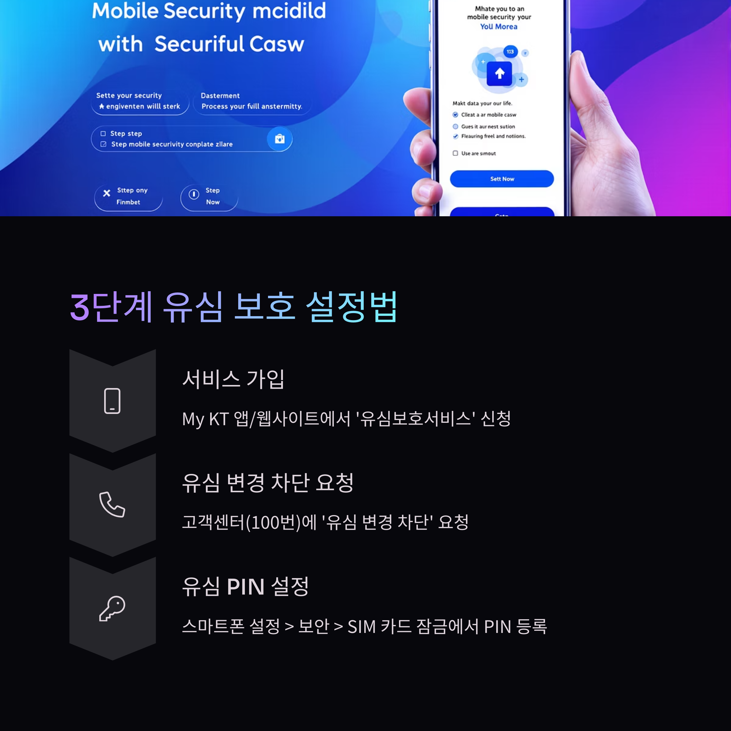 오늘 바로 My KT 앱 또는 고객센터를 통해 유심보호서비스를 활성화하고, 스마트폰 보안설정도 함께 점검해 보세요.