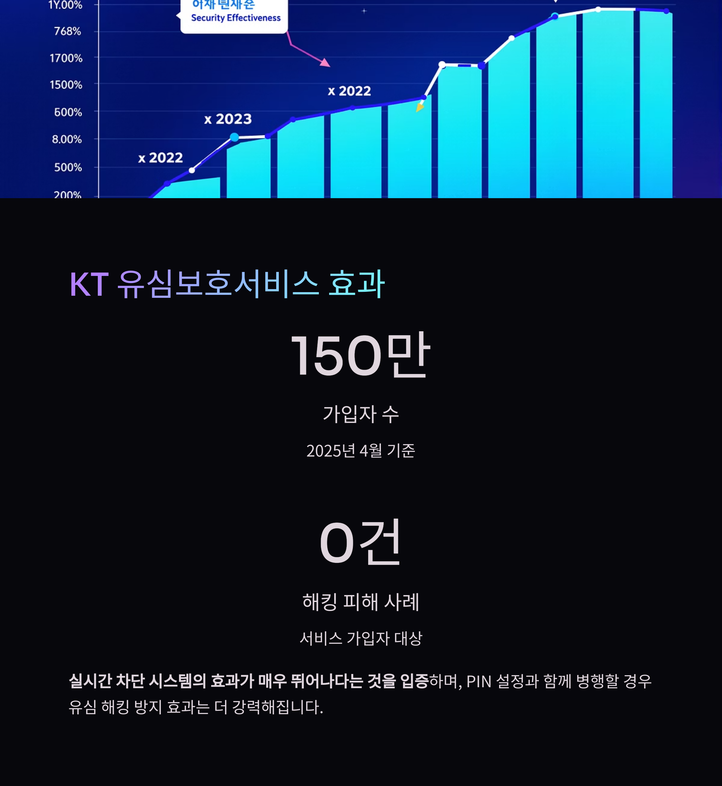 2025년 4월 KT는 유심보호서비스 가입자 수 150만 명 돌파를 발표했습니다.