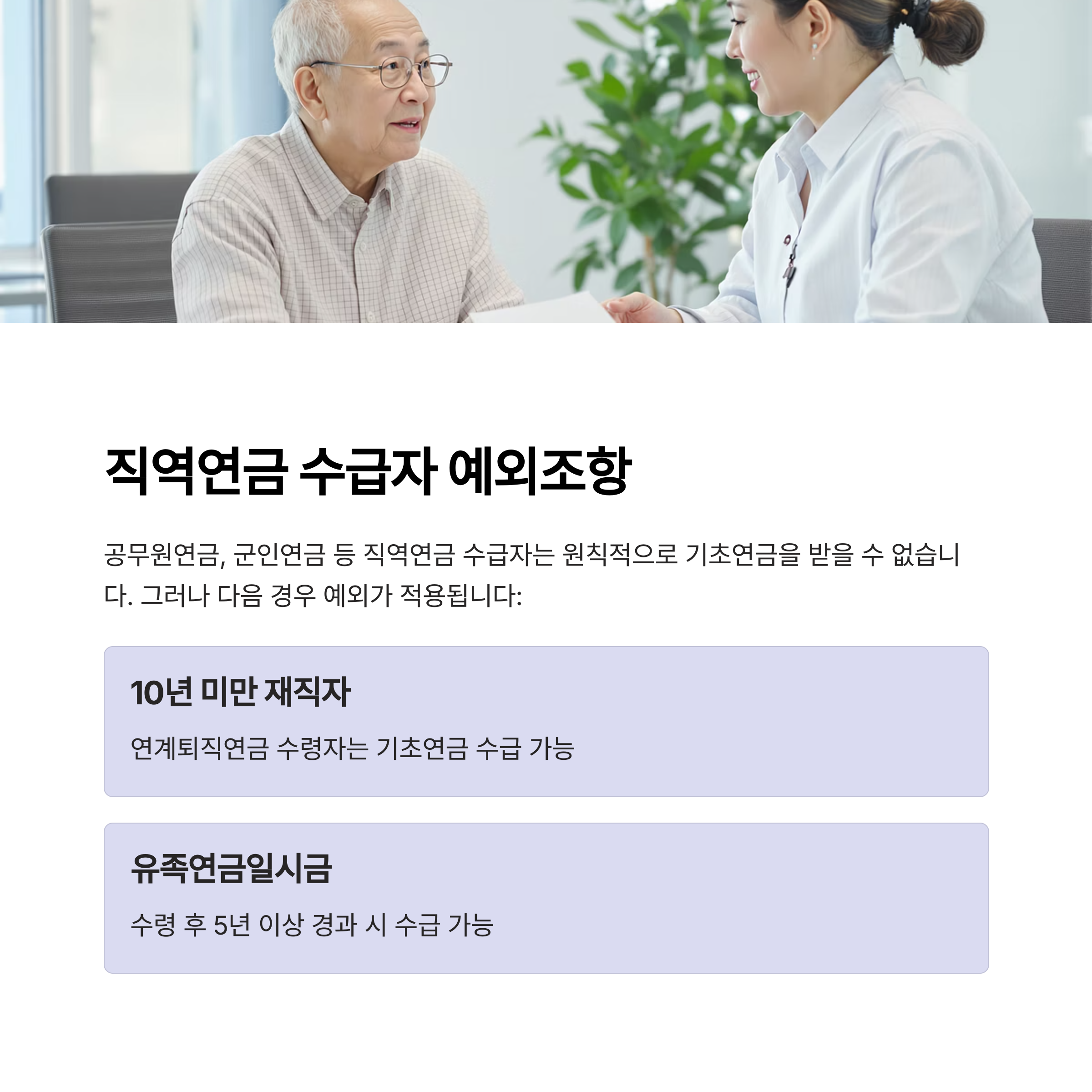 단, 직역연금 수급자나 그 배우자는 원칙적으로 제외되나 예외조항이 일부 존재합니다.