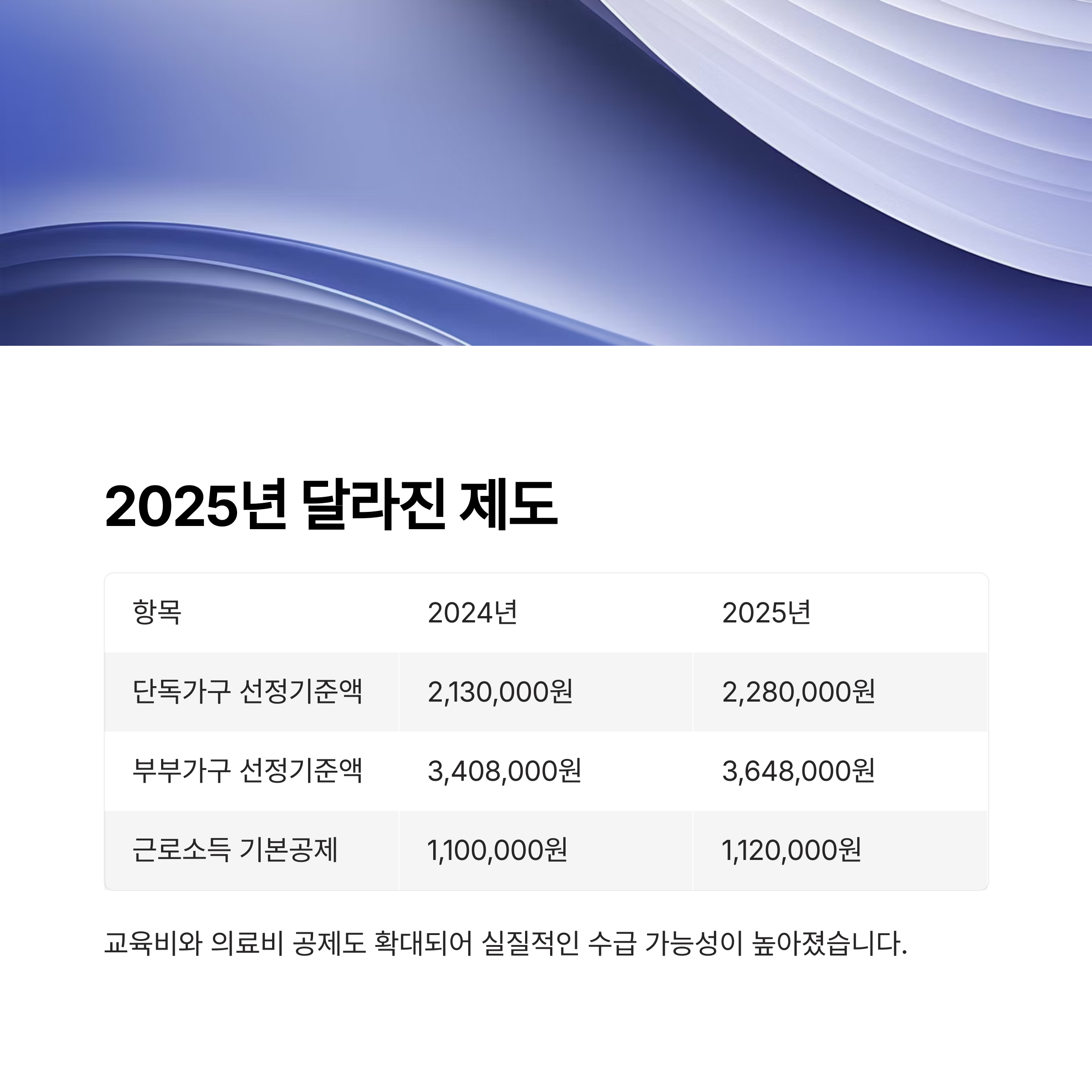 핵심: 공제 항목인 교육비와 의료비도 확대되어, 실질적인 수급 가능성이 더 높아졌습니다.