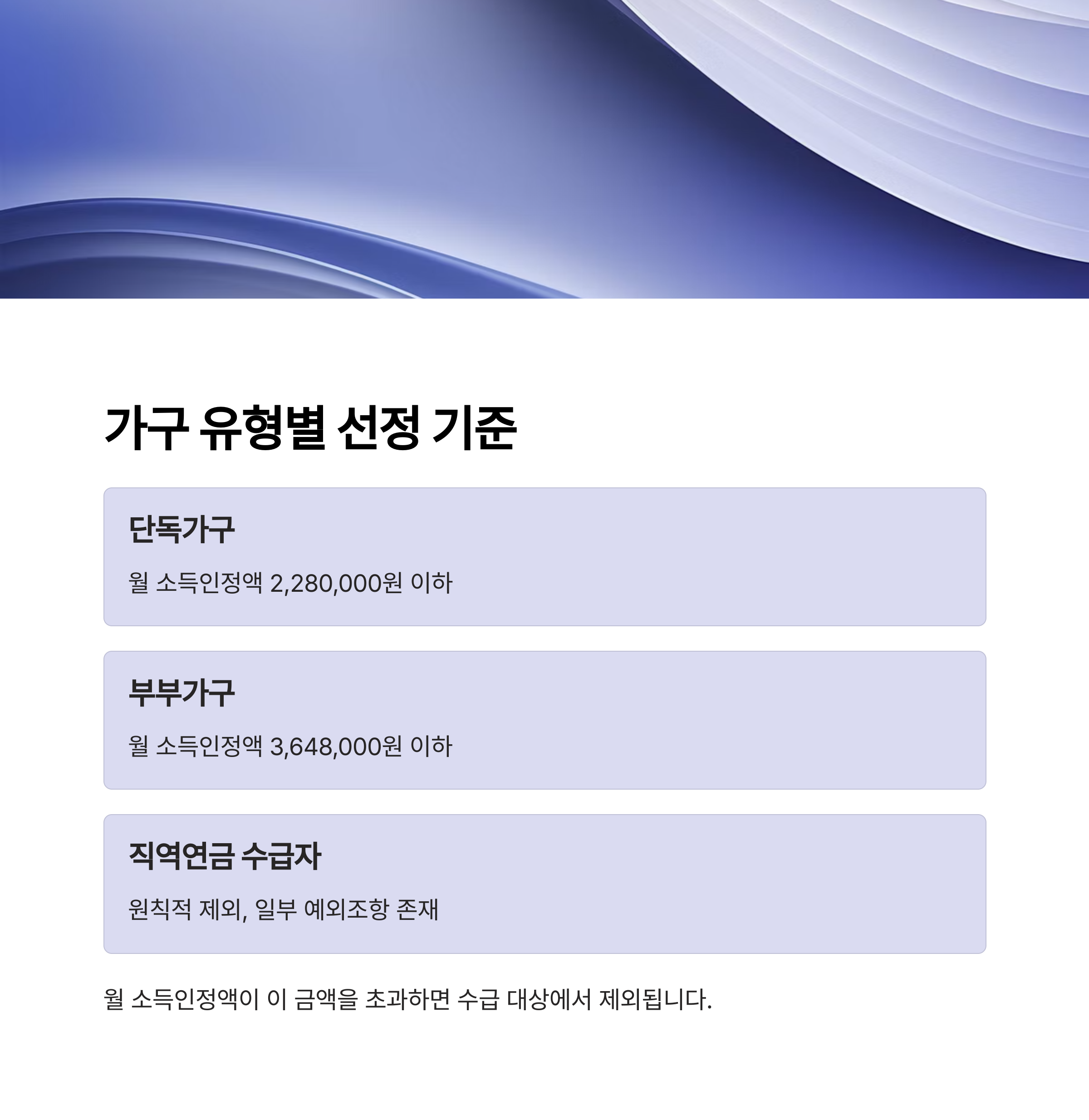 핵심: 월 소득인정액이 이 금액을 초과하면 수급 대상에서 제외됩니다.