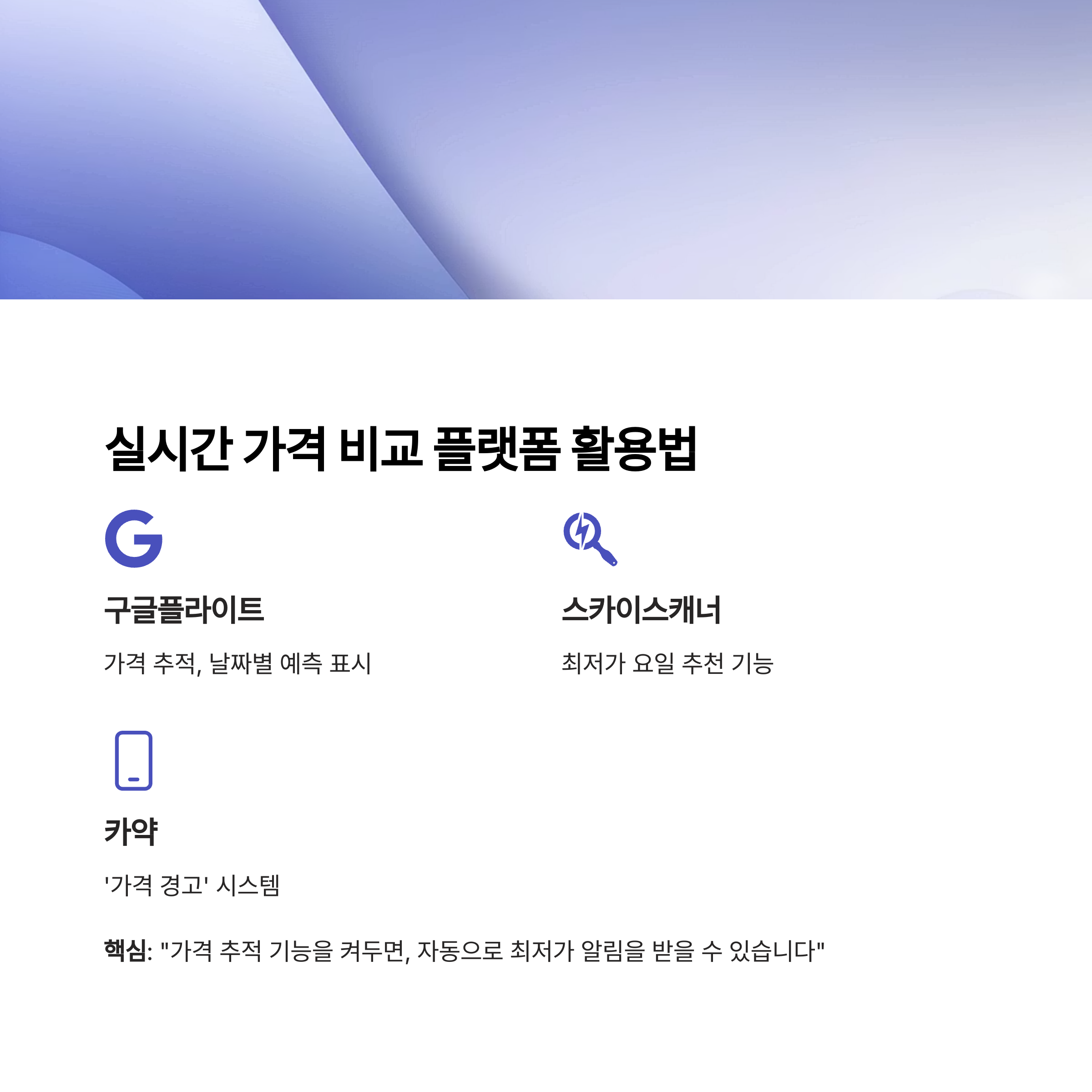 구글플라이트, 스카이스캐너, 카약 등은 실시간으로 가격 변동을 알려주는 시스템을 갖추고 있습니다.