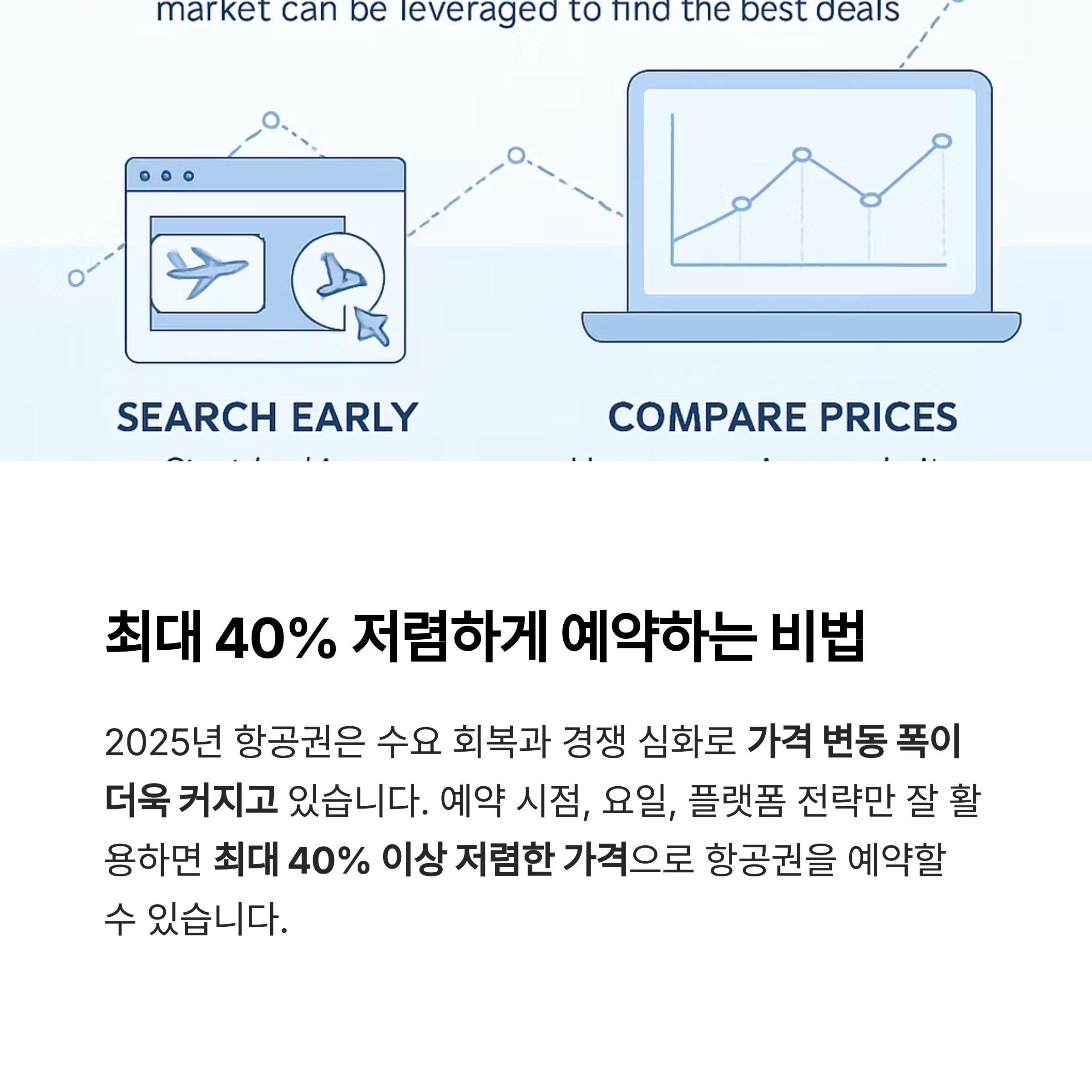 하지만 예약 시점, 요일, 플랫폼 전략만 잘 활용하면 최대 40% 이상 저렴한 가격으로 항공권을 예약할 수 있습니다.