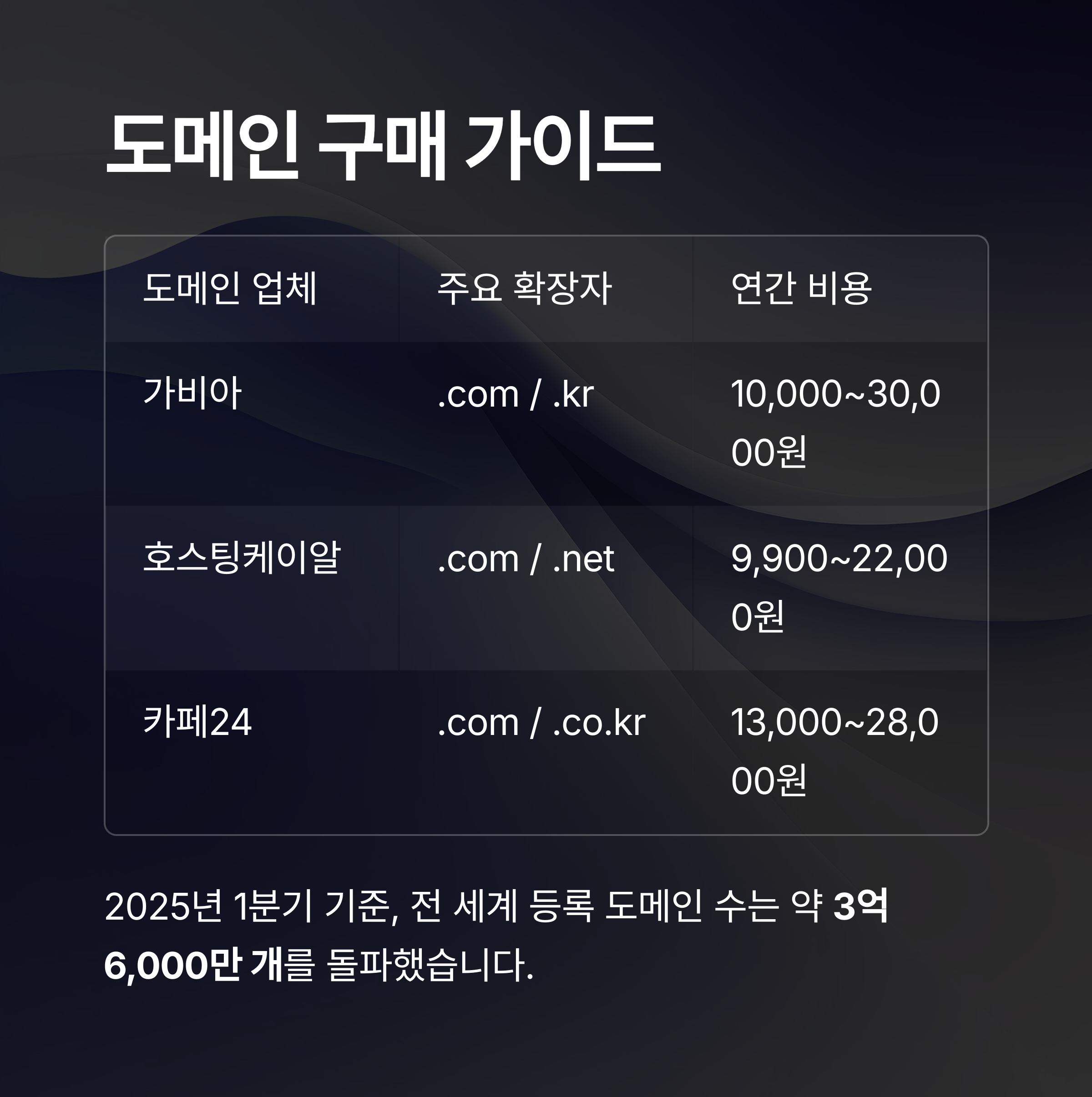 2025년 기준, 도메인은 국내외 다양한 등록처에서 쉽게 구매할 수 있습니다.