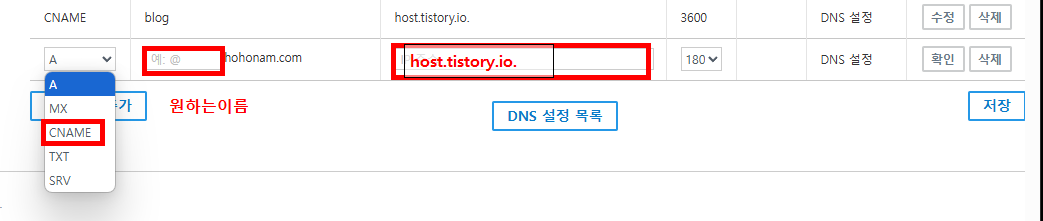 | 호스팅케이알 | www | CNAME | host.tistory.io |