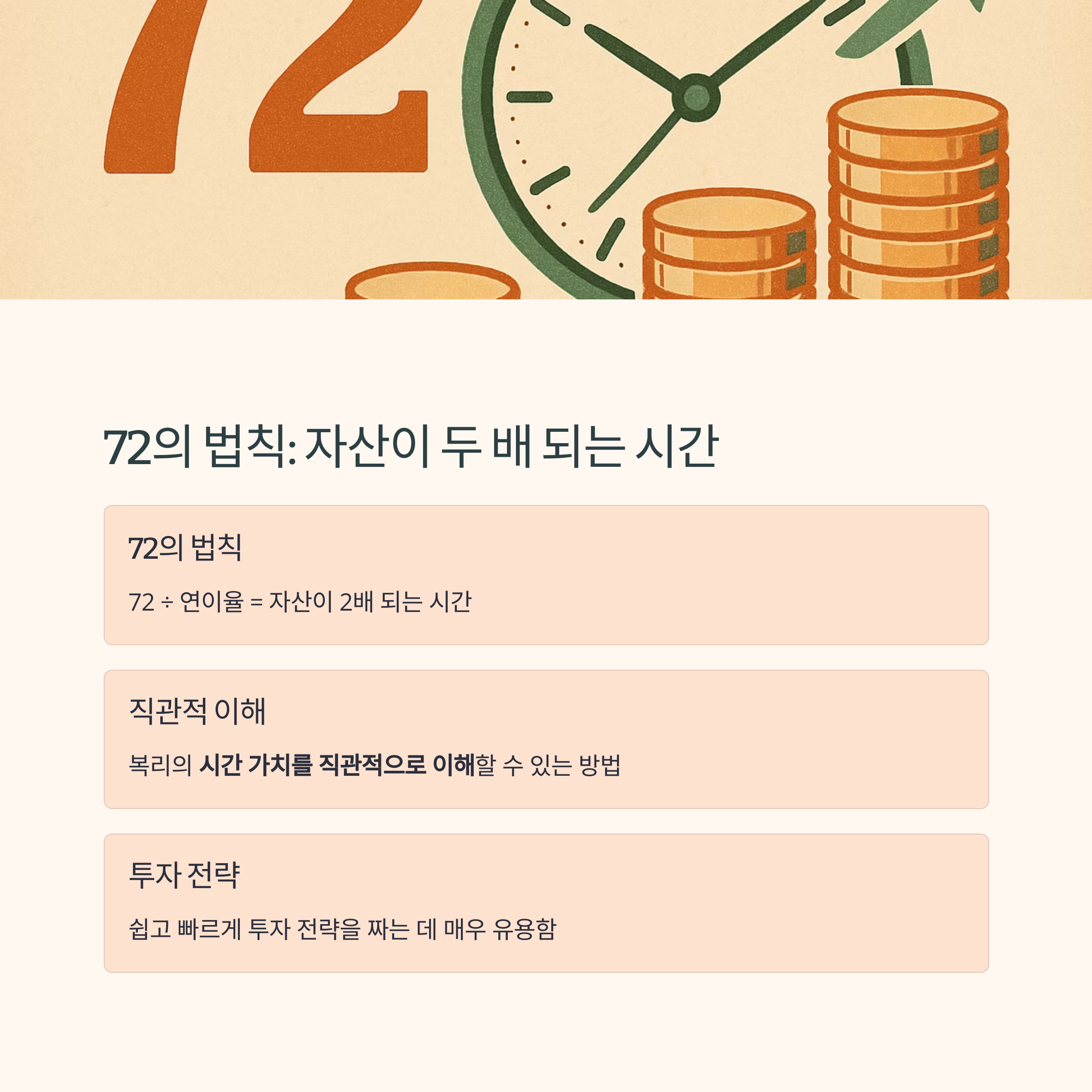 복리의 효과를 빠르게 계산하는 대표 법칙이 있습니다.