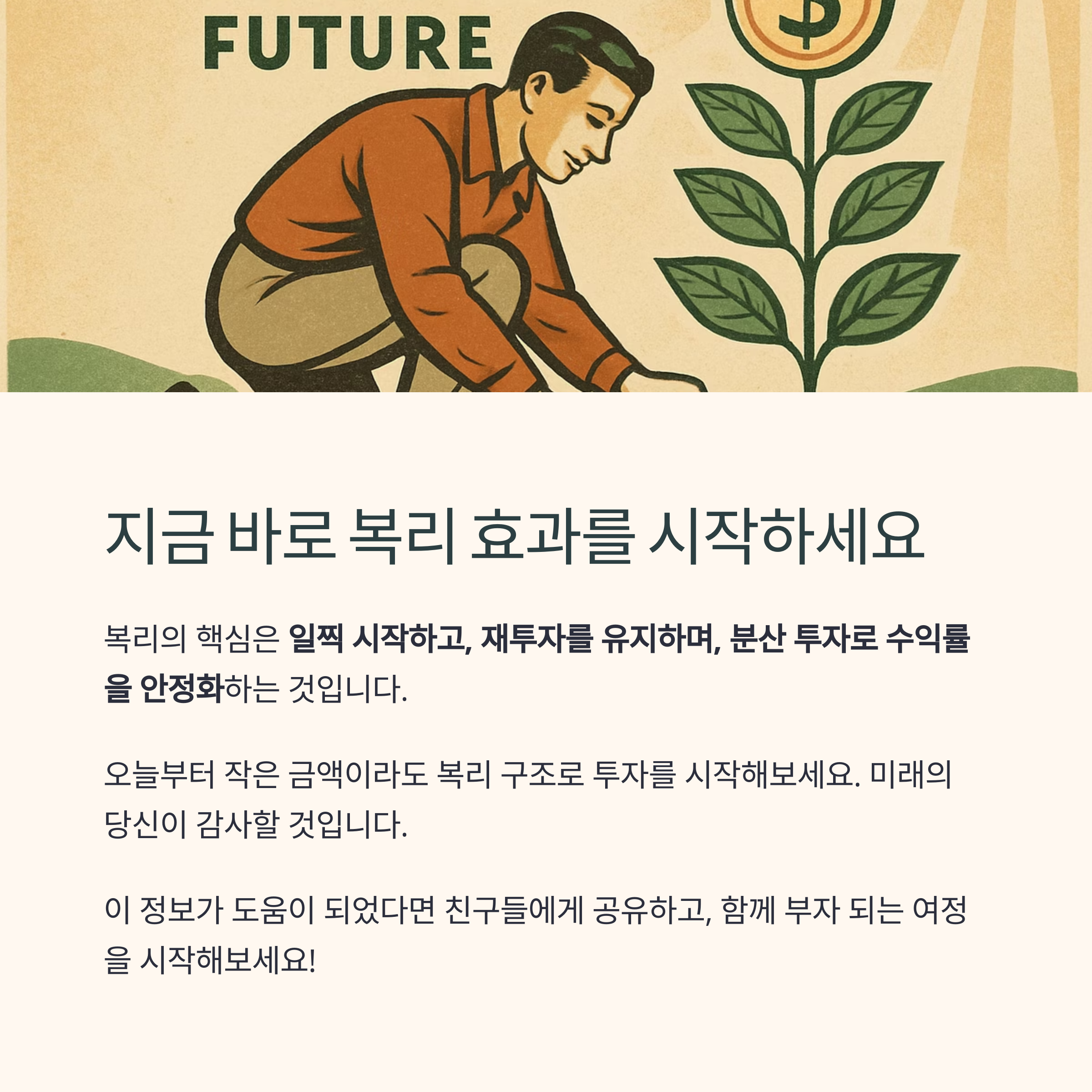 | 재투자 | 수익을 다시 투자해야 복리 유지 |