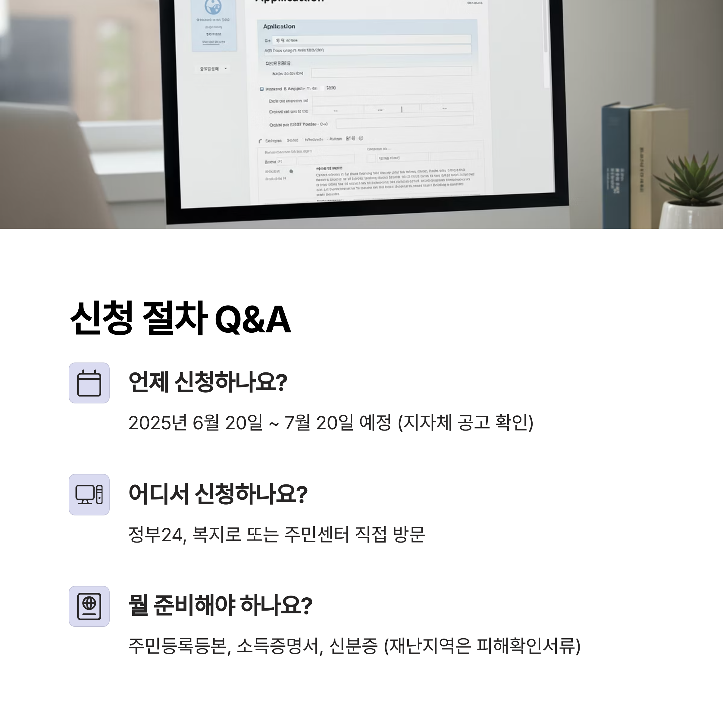 A: 2025년 6월 20일 ~ 7월 20일 예정 (지자체 공고 필수 확인) - Q: 어디서 신청하나요?