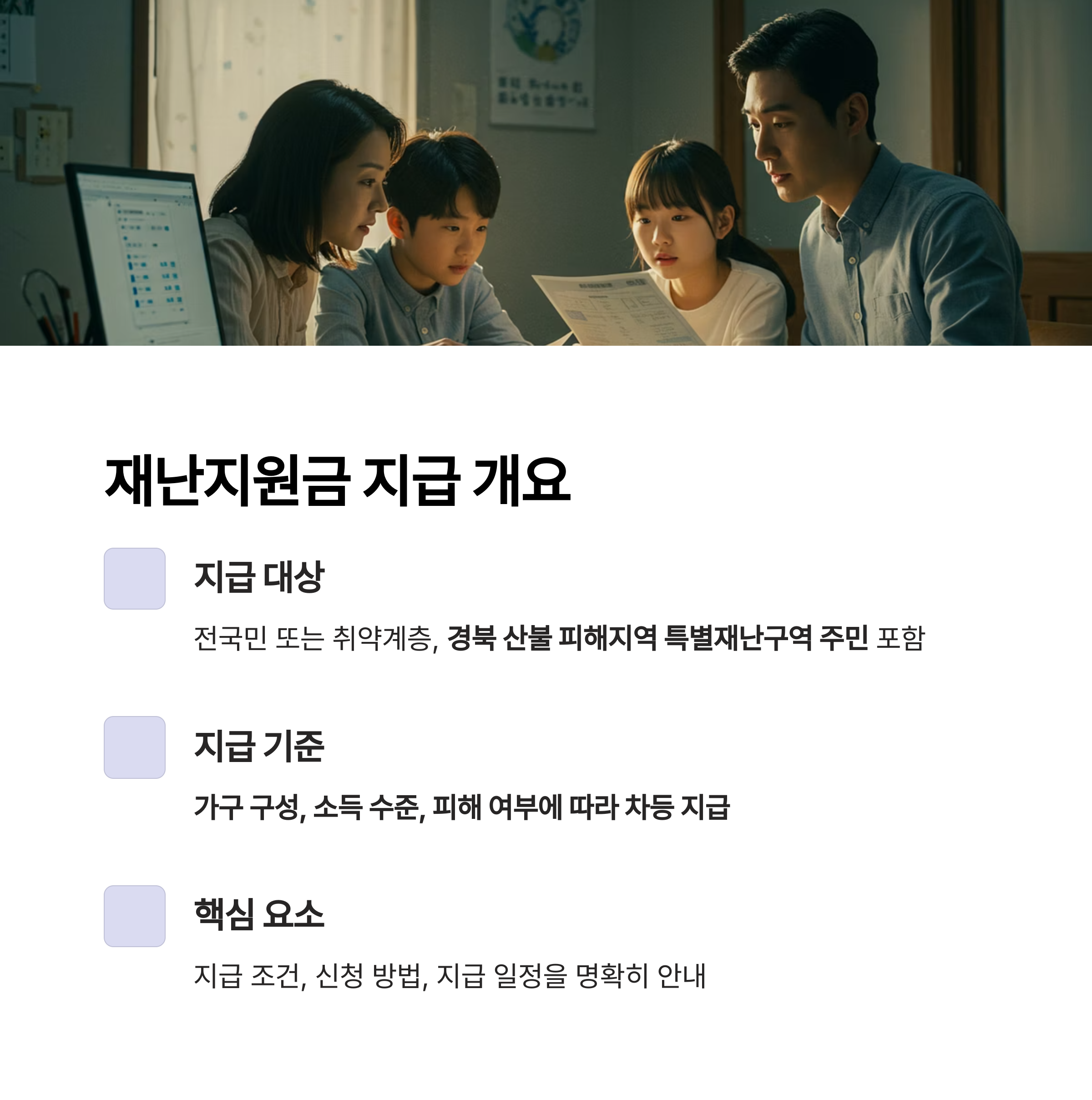 신청자의 상황에 따라 차등 지급되며, 정확한 신청 절차와 기한 준수가 매우 중요합니다.