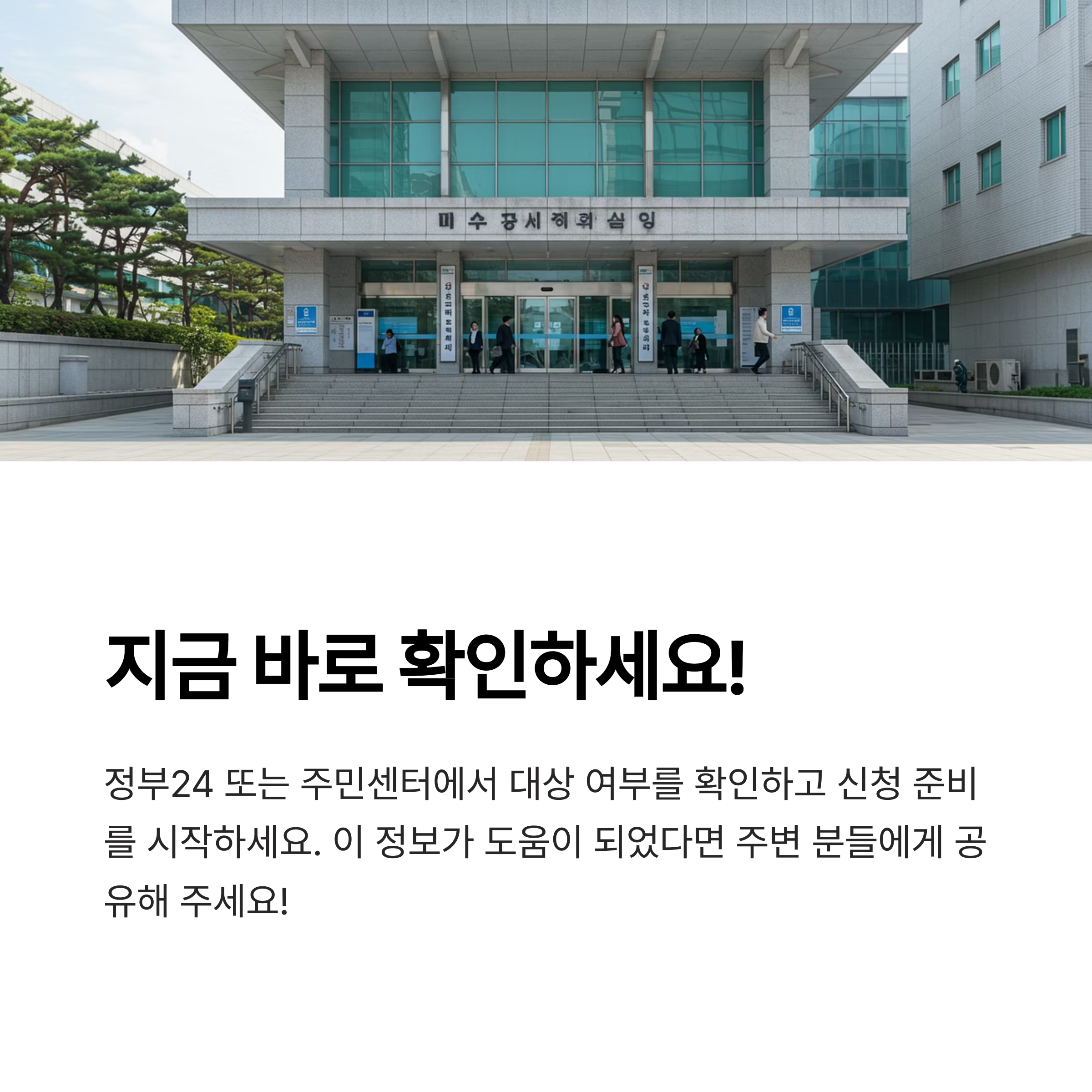지금 바로 정부24 또는 주민센터에서 대상 여부를 확인해 보세요!