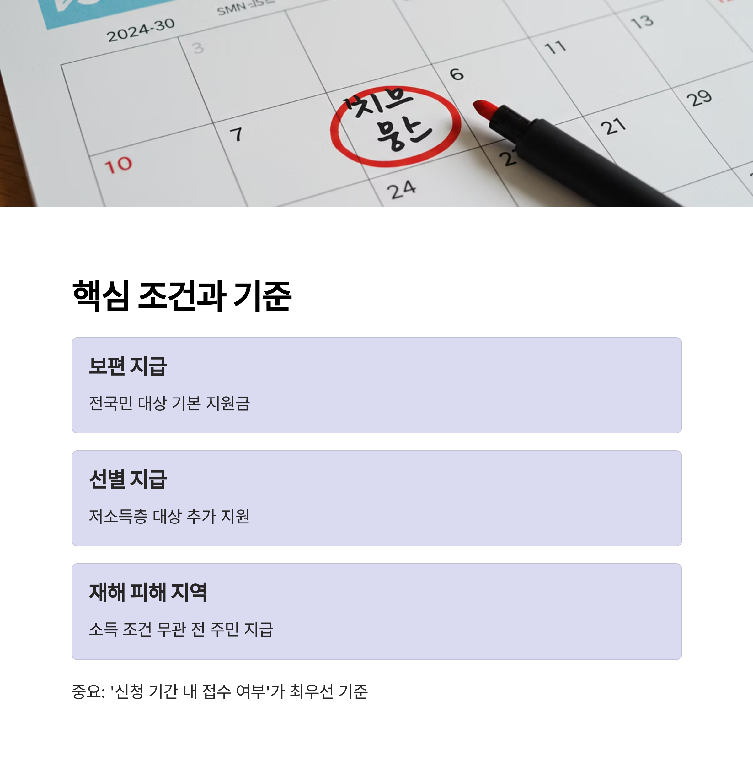 중요 포인트는 ‘신청 기간 내 접수 여부’가 최우선 기준이라는 점입니다.