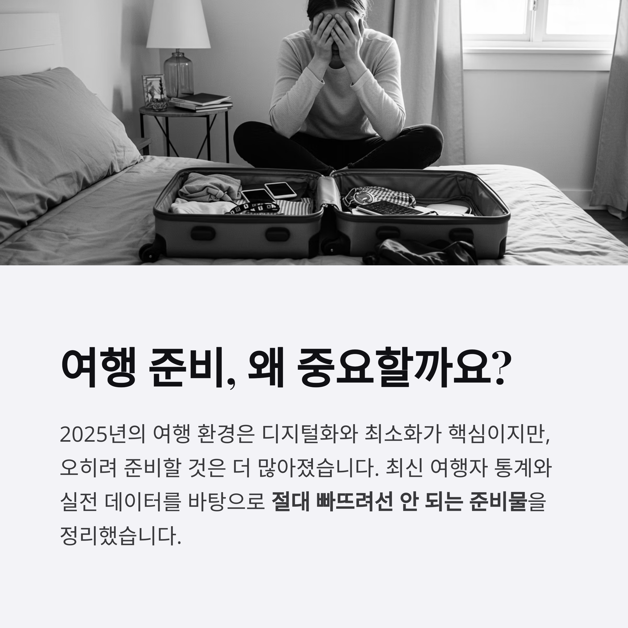 이 글은 최신 여행자 통계와 실전 데이터를 바탕으로 절대 빠뜨려선 안 되는 준비물을 정리해
