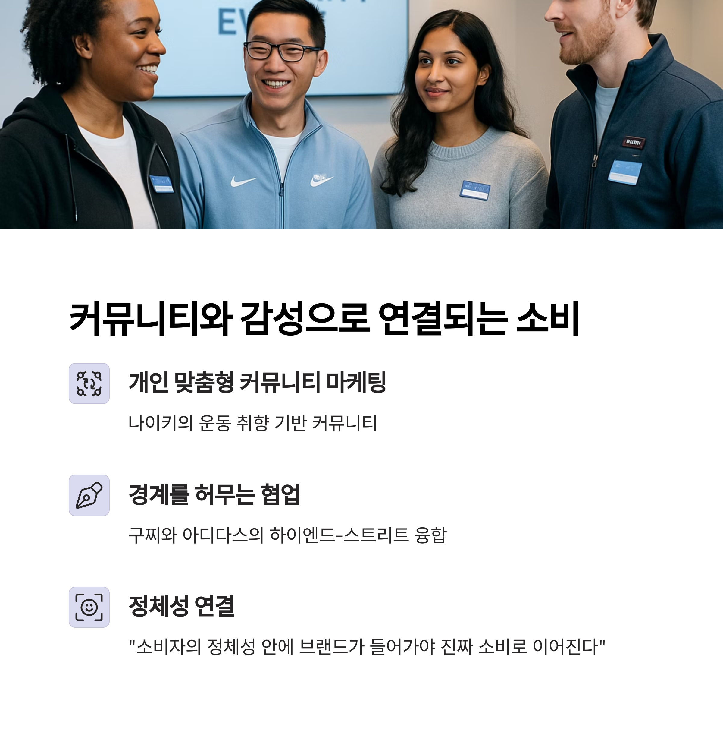 예를 들어 나이키는 운동 취향 기반 커뮤니티를,