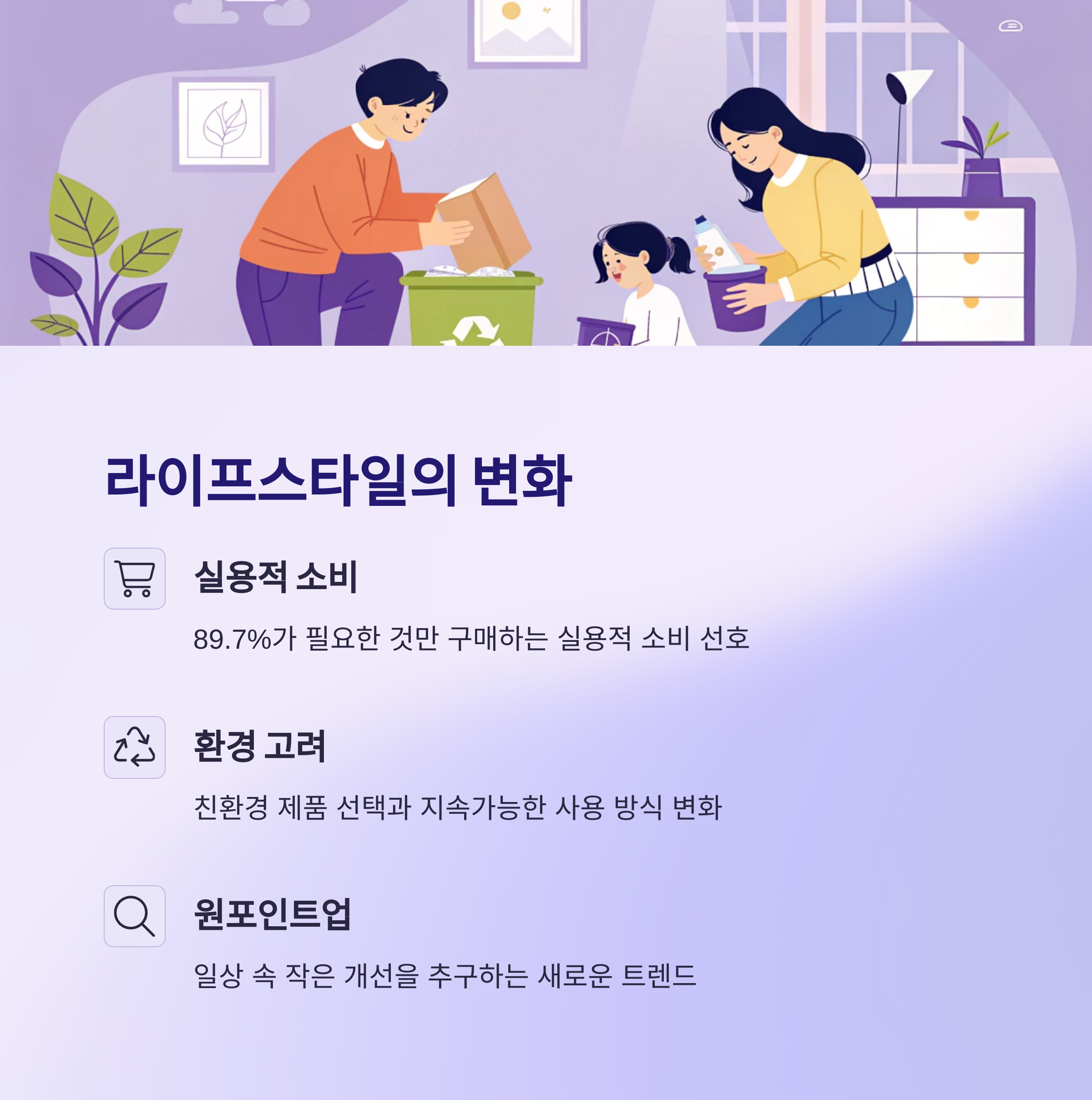 | 미래 전망 | AI·스마트시티·탄소중립 등 기술과 융합, 지속가능 소비 확산 |