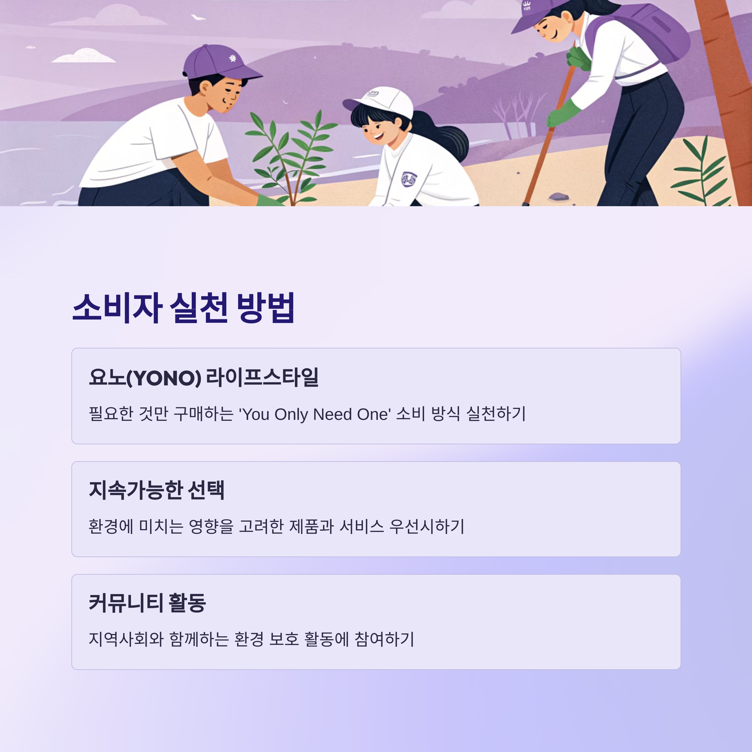 - ☑️ 최근 구매한 제품의 환경 영향을 고려했나요?