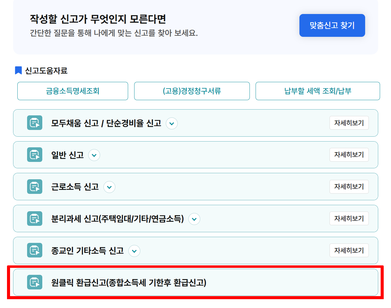 4. ‘원클릭 환급 신고’ 선택