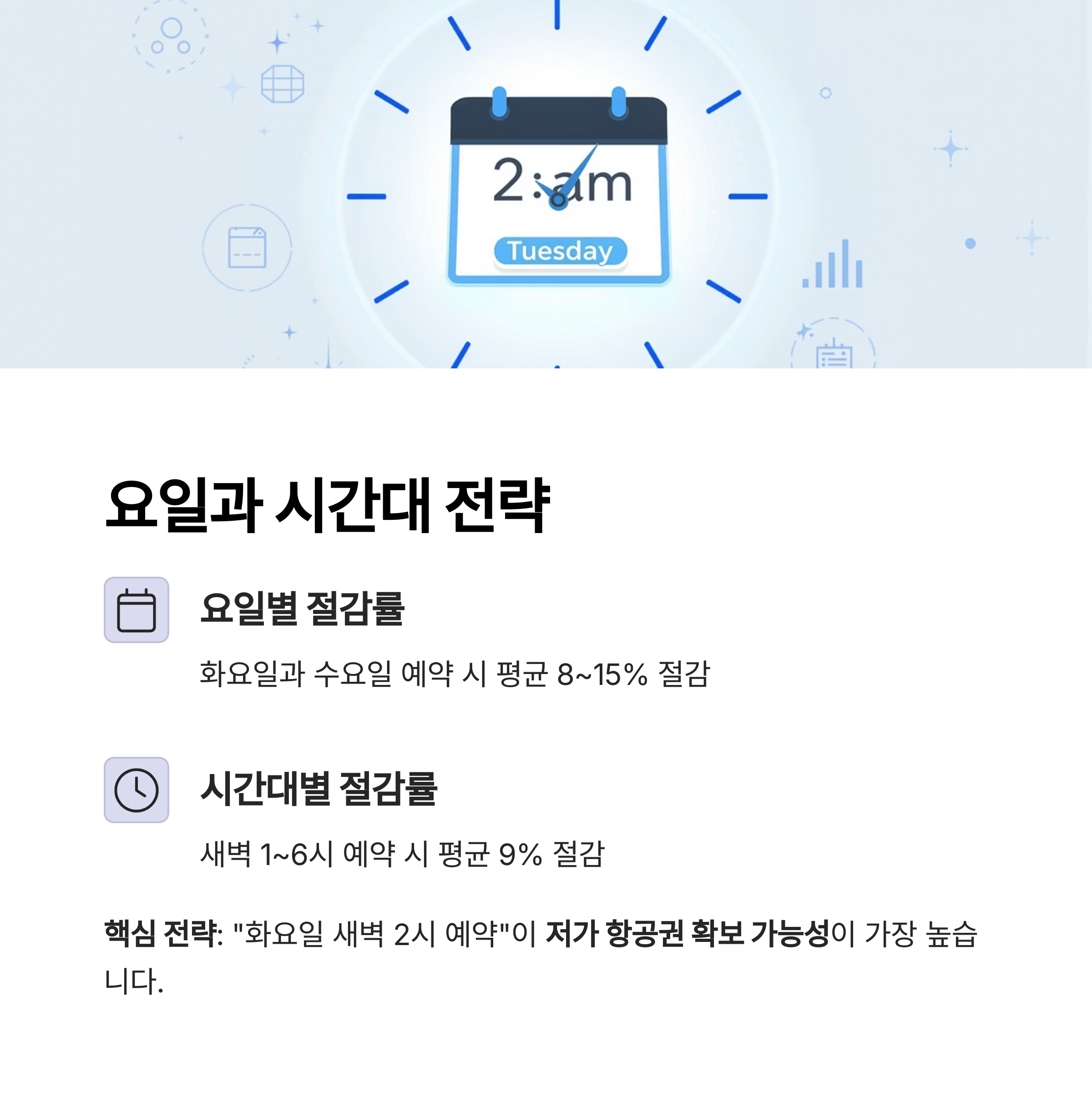 핵심 전략: "화요일 새벽 2시에 예약하라"는 말은 그냥 속설이 아닙니다. 실제로 시세 반영 전 저가 항공권 확보 가능성이 가장 높기 때문입니다.