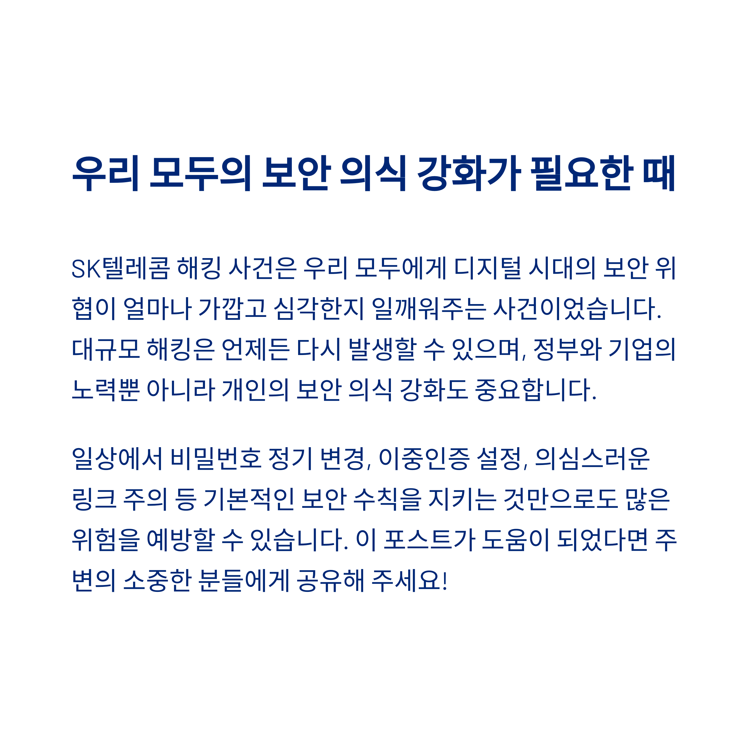 또한 전체 통신업계에 걸쳐 사이버보안 수준을 끌어올리는 계기로 삼아야 할 것입니다.